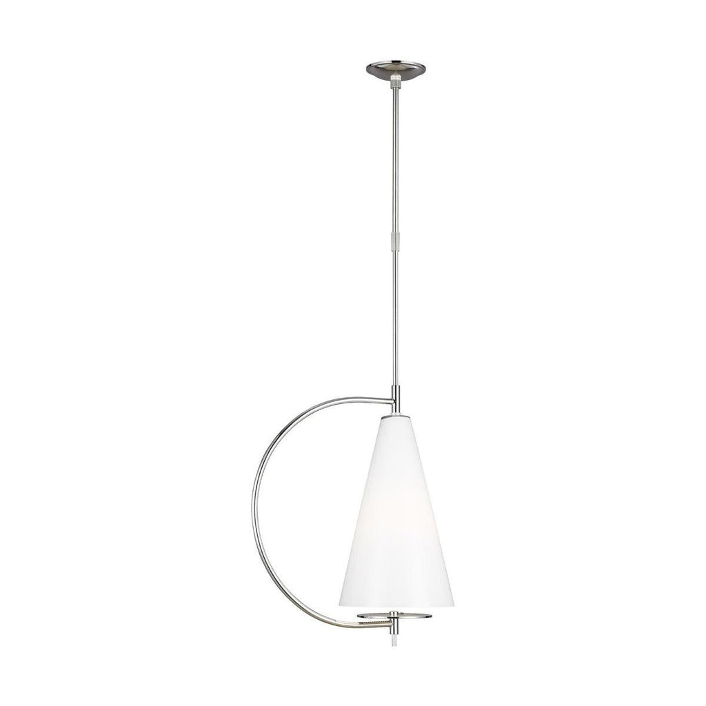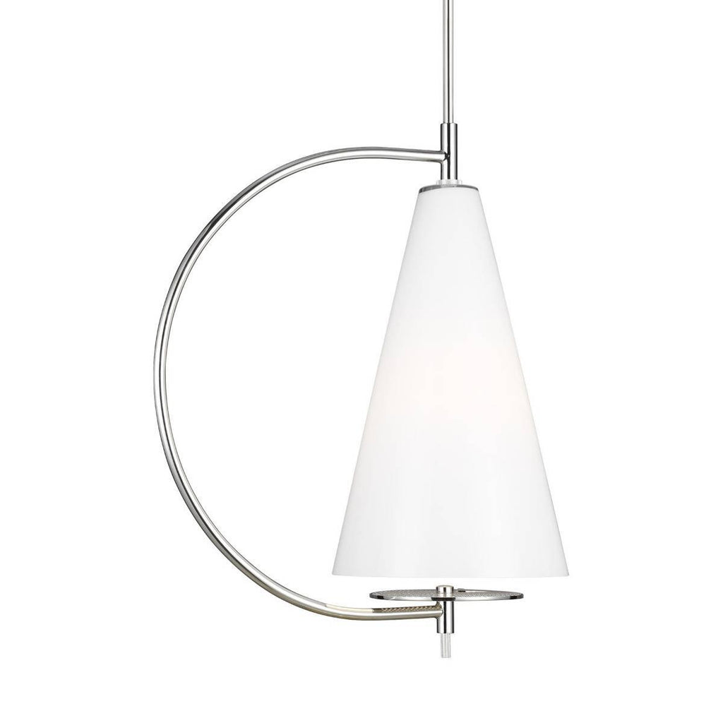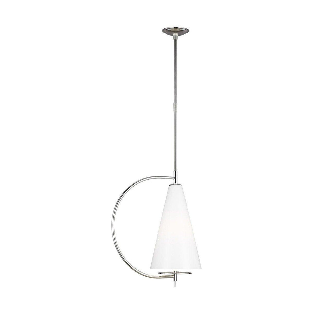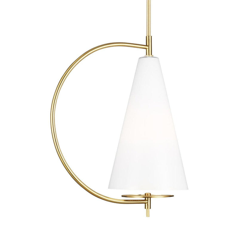 The Kelly by Kelly Wearstler Gesture Pendant is a mesmerizing masterpiece designed to take the conventional lighting concepts to the next level and combine them with modular techniques. This adorable pendant is suspended from the ceiling with a sleek metal rod for a bold look. The semi-conical frame can accommodate a 75W A19 bulb (not included) for extra light and illumination. Choose from the midnight black, polished nickel, and burnished brass finish options that ensure adaptability towards all types of decors.