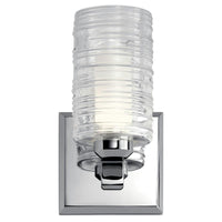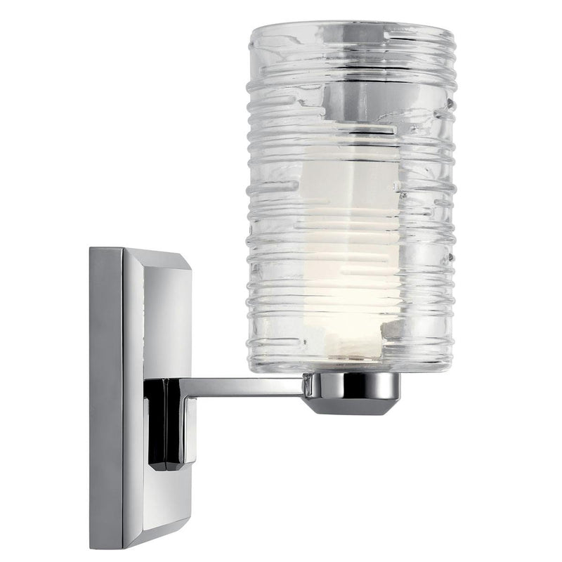 The Giarosa™ light wall sconce features two types of glass: a Clear Hand-Spun Ribbed Outer Glass shade surrounds a Satin Etched Cased Opal Glass shade. It's Chrome finish is the exclamation point on this exciting, contemporary fixture.