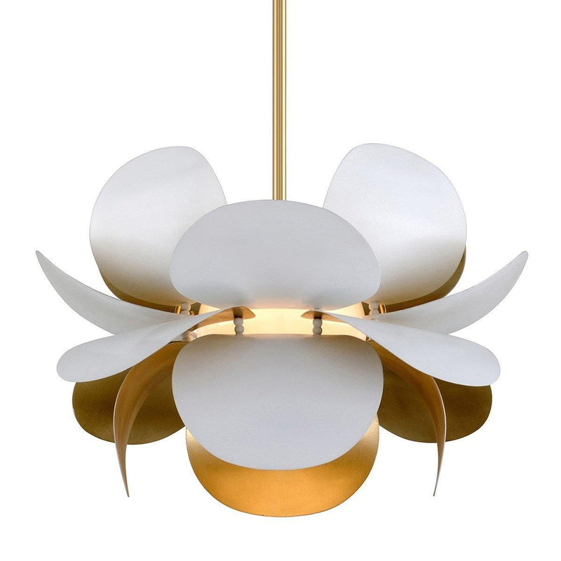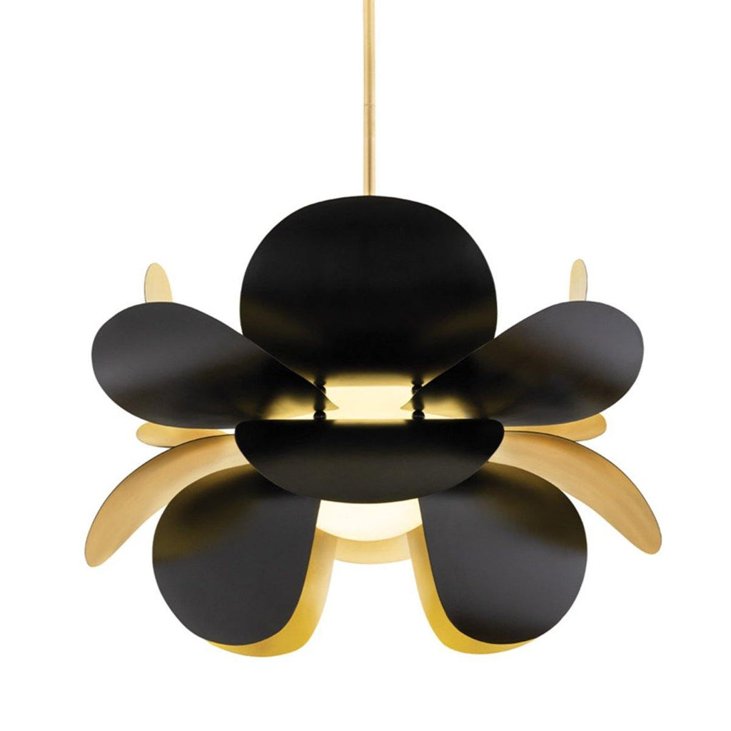 Combining excellent craftsmanship and a nature-inspired structure, the Ginger Chandelier from Corbett Lighting is a unique piece for the contemporary and traditional home. With an appealing black/white finish, this lighting device is all set to be the conversation starter in your home. The white or black leaf-like shades combine beautifully with gold leaves. A single light bulb shines its light through these shades and spreads a charming illumination in your home. Available in 4 sizes - small, medium, large and extra-large, this gold chandelier is offered in black and white shades. Uses an E26 light source.