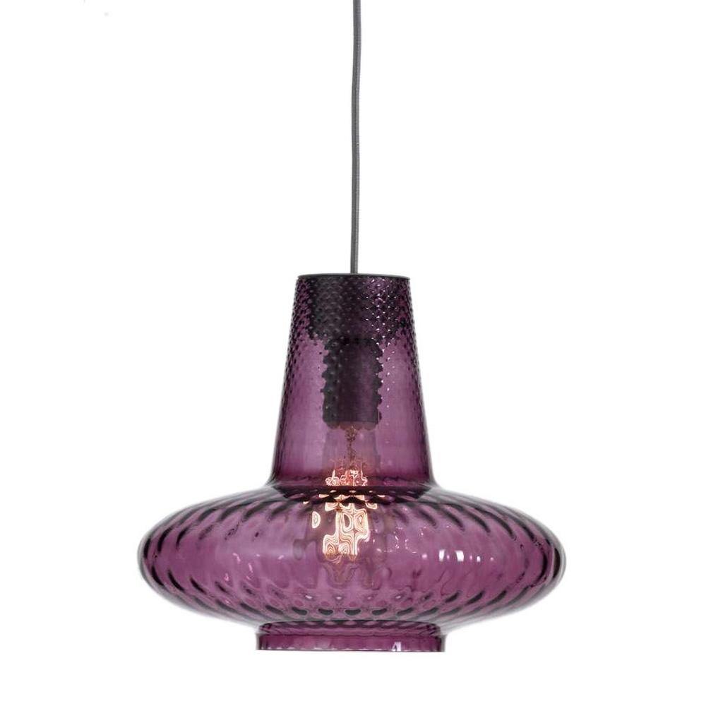 This handcrafted Giulietta Pendant Light by Zafferano has a design that has been carved using the mouth-blowing technique of glass making. This pendant light has a "balloton" relief finish and is available in amber, gray, blue, bronze, clear, gold, silver, rose gold, and amethyst color. The E26 lighting is bright enough to illuminate your décor. The Giulietta Pendant Light by Zafferano is available in two shapes. Its gray or white metal painted parts along with the gray fabric cables are made using the latest technology.