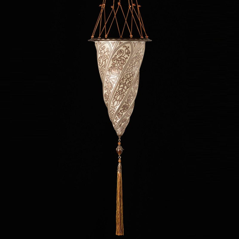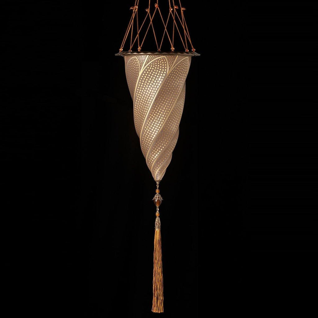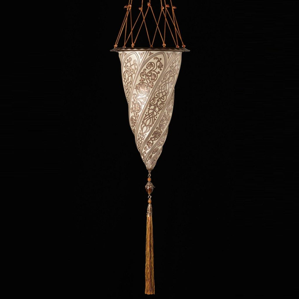 The Venetian brand Venetia Studium carries over a hundred years of tradition of its craft. Its rich collections include not only the famous silk lamps, but also glass and contemporary lamp designs. The company also creates clothing inspired by ancient Greece, as well as furniture and tableware that combine colorful Arabic patterns, reminiscent of Sultan luxury with 24K gold finishes and high-quality materials - silk and velvet. All products are hand-made with the greatest care and respect to traditional techniques.