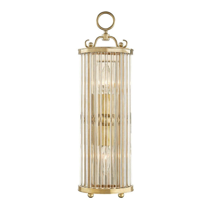 Glass No.1 Wall Sconce by Hudson Valley Lighting features a cylindrical design, shaped like a cage with a bulb inside. The casts a sparkling light when illuminated. This single-light wall sconce will be a perfect addition to any contemporary home. You can install this Incandescent light source in any setting, including the living room, hallway, bedroom and more. This effortlessly stylish wall sconce is available in fine aged brass and polished nickel finish.