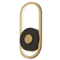 An elliptical shape in Gold finish is illuminated by dedicated LED lighting and secured to a disc in contrasting black finish making a modern silhouette rated for outdoor applications. Suitable for wet locations, the fixture is constructed of corrosive resistant aluminum channel finished in UV-rated outdoor powder coats and sealed within the frame to prevent water intrusion. With an extension less than 4 inches, this attractive sconce series is also inherently ADA compliant for indoor public spaces where needed.