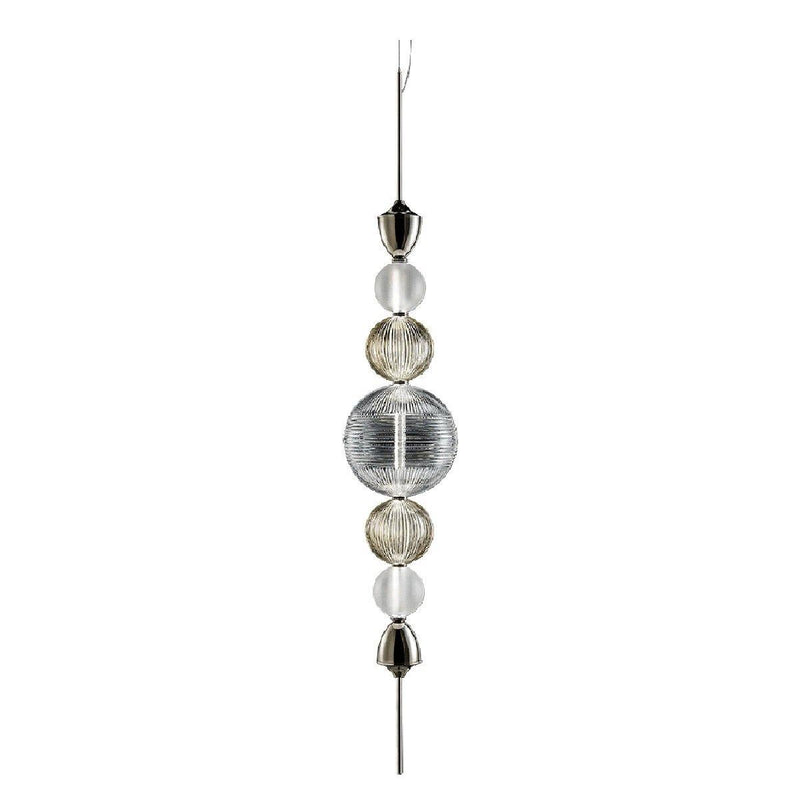 Featuring a unique linear pattern with modern detail, the Greta Suspension is sure to enhance the look of any living space. This suspension has an interesting design with carved crystal detail over the metal structure in nickel finish. The LED light in the suspension changes the dynamics of any bedroom, living room, dining room or kitchen. A brilliant light accessory that is available in multiple color options like Satin, Clear and Teak. Also, you can select this suspension from two finishes; light gold and shiny nickel.