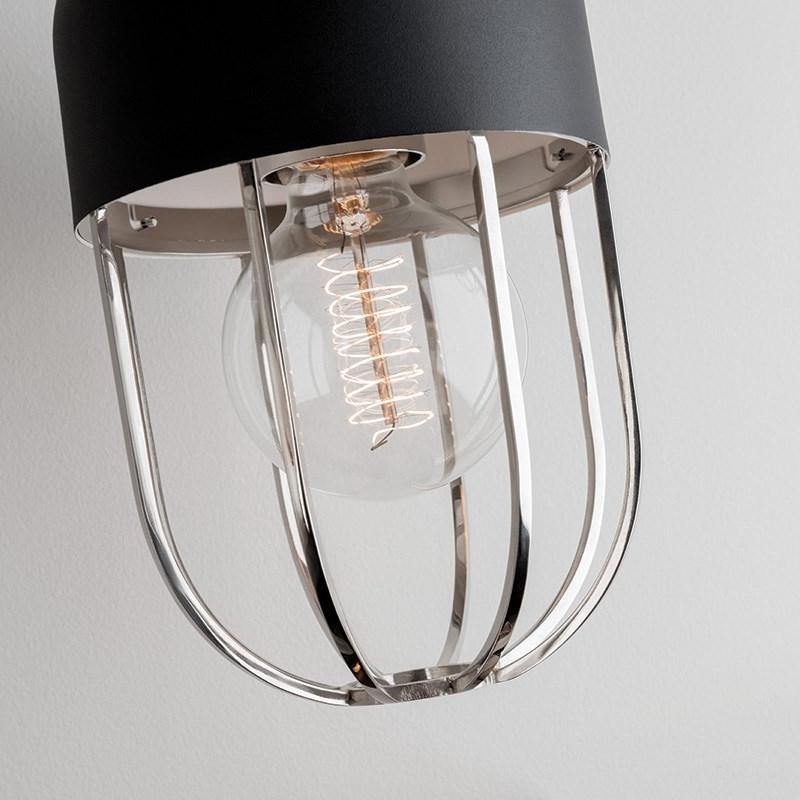 The Haley Wall Sconce by Mitzi has a capsule-like shape. The light fixture comes in aged brass/black, polished nickel/black, and polished copper/black. It features an incandescent bulb and an E26 Medium Base Socket. Attached to a base of 4.5-inch, which has a metallic shine, the wall sconce delivers 60w ea. The shade has a black covering on the upper part, whereas the lower part of the shade appears like a cage. The fixture is ideal for both interiors and exteriors and can be easily mounted on the walls.