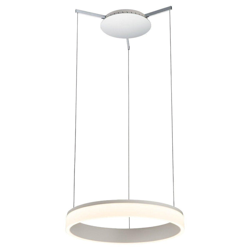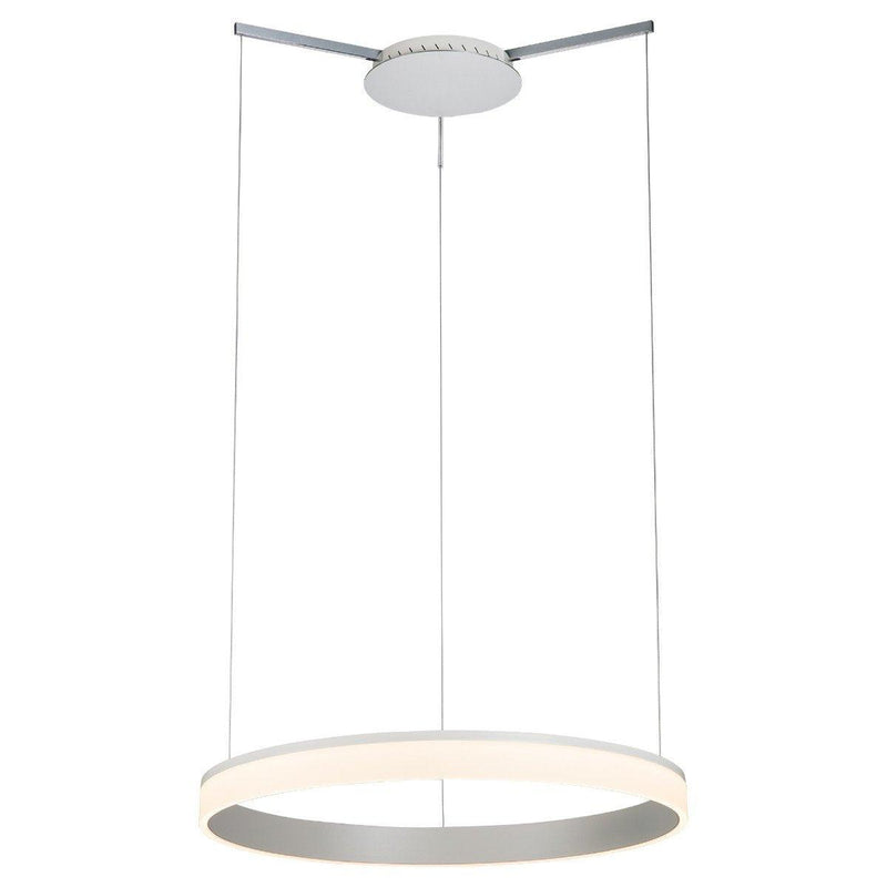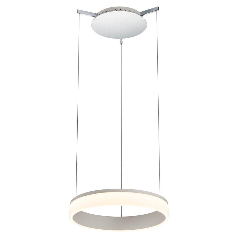 Featuring a minimalist design, this circular light piece from the Halo Series Pendant by Page One changes the whole vibe of the room. Decorate your dining room or living room with this ultra-sleek and modern style pendant light. Made with aluminum and steel, the suspended light is finished with electroplating and powder coating. Highlight your modern kitchen or office space with this ring-shaped glowing light piece hanging from a central attachment and balanced by three wires.