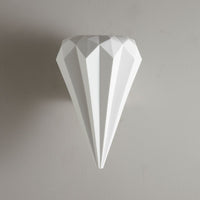 The Hatton 3 Wall Light has a beautifully intricate bone china shade. Using a highly skilled process, we have been able to transform bone china into a multi-faceted, symmetrical, gem-like form. When switched 'off' the pendant has an angular sculptural beauty, and when 'on' it provides warm illumination with dramatic lines and shadows. The chrome back plate provides a contemporary edge.