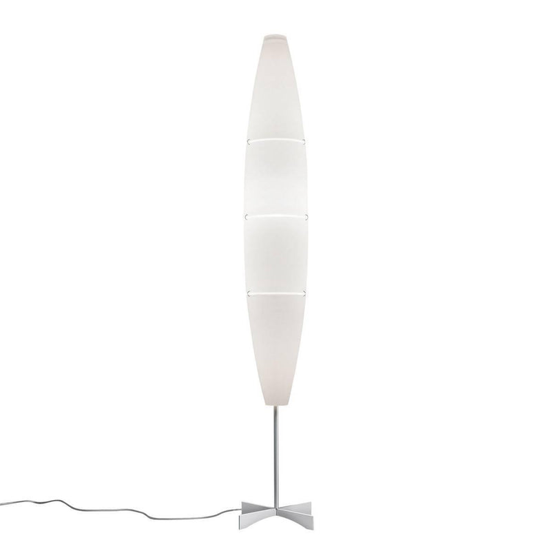 Lamps are the result of the creation of the designer Jozeph Forakis. Part of the design collection at the the Museum of Modern Art (MoMA) in New York, the Foscarini Havana Floor Lamp features a lacquered or chrome metal stem and base and a shade comprised of 4 satin-finish polyethylene elements linked at the edges with small, circular clips. Made in Italy.
