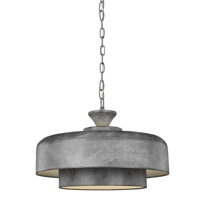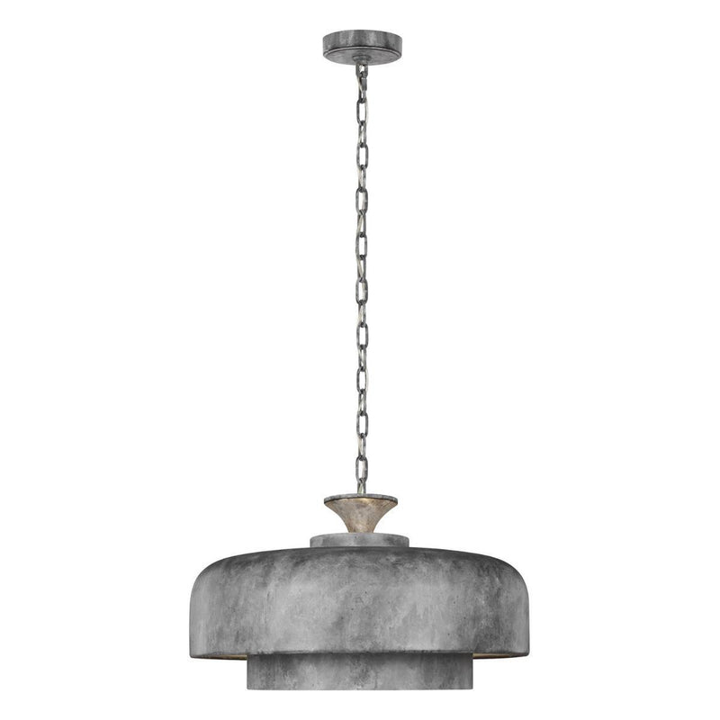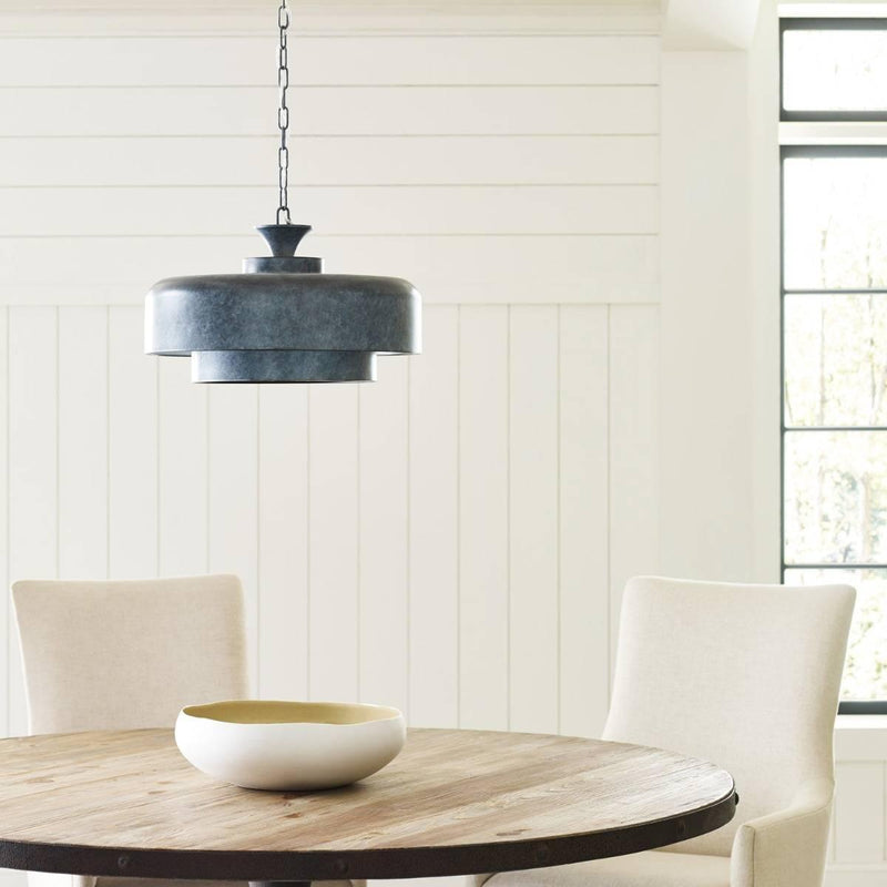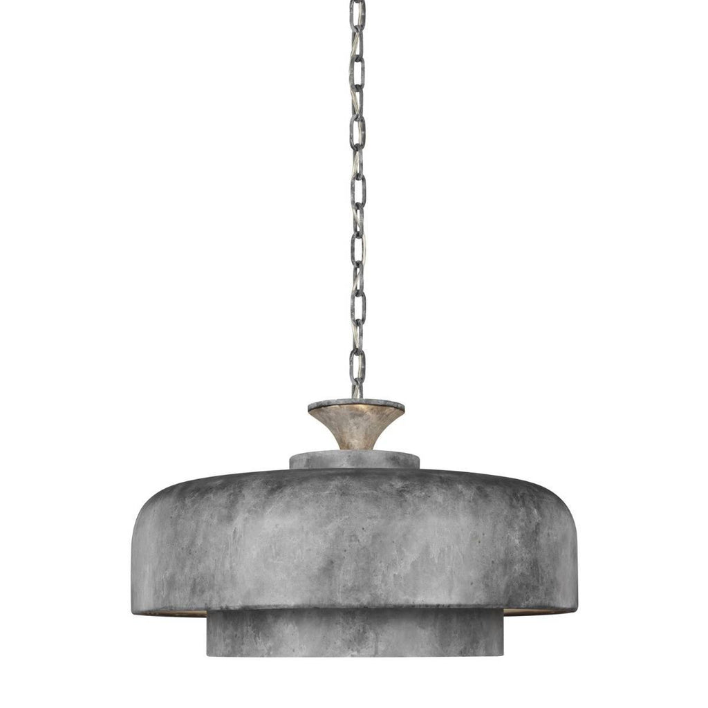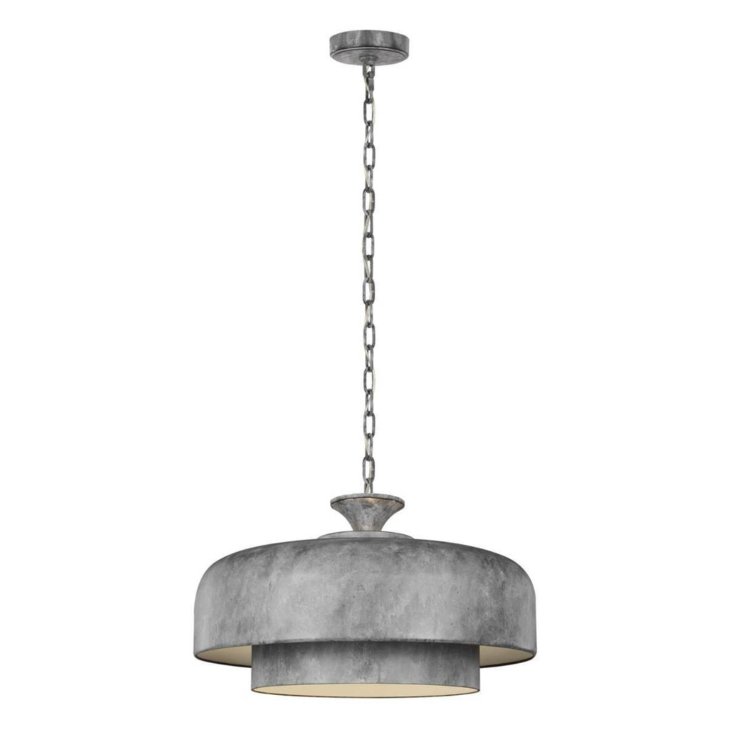 Exclusively designed to complement oversize spaces, the ED Ellen DeGeneres Haymarket Pendant adds a rustic charm to the modern or classic interiors. It has weathered galvanized finish in a unique silhouette that creates an elegant design. The medium-sized pendant has an 18.1-inch diameter and the large-sized pendant has a 24-inch diameter. It is recommended to be installed in the damp locations. This pendant comes with an inter-link chain that promotes smooth installation. Finished with clean and smooth edges, this stylish pendant has a luxurious appeal.