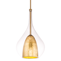 A fresh context with layers of light. A lustrous gold leaf dome suspended within a clear glass teardrop--a seductive shape offering lovely, warm luminescence.