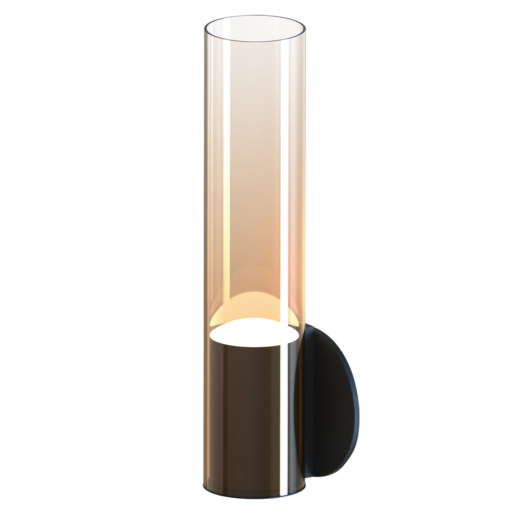 Minimalist in form and futuristic in styling, a gradient color effect applied to cylindrical glass shades provides a dynamic lighting effect. A Polished Gunmetal LED housing supports the glass adds a mirror like effect to the highly reflective glass. The resulting effect is a replication of the LED light along the length of the glass. Available in a mirrored Gradient Smoke or Gradient Amber glass, the finishes remarkably coordinate with many interior color palettes.