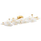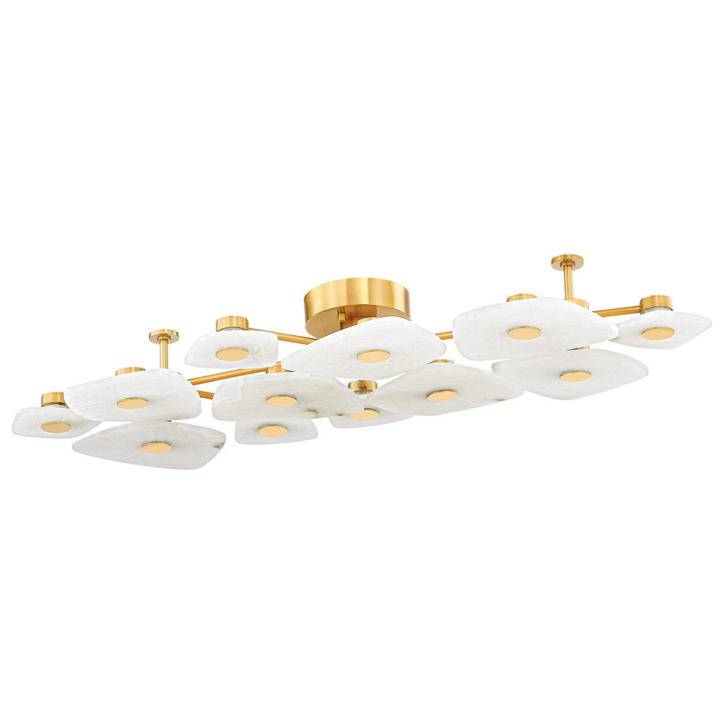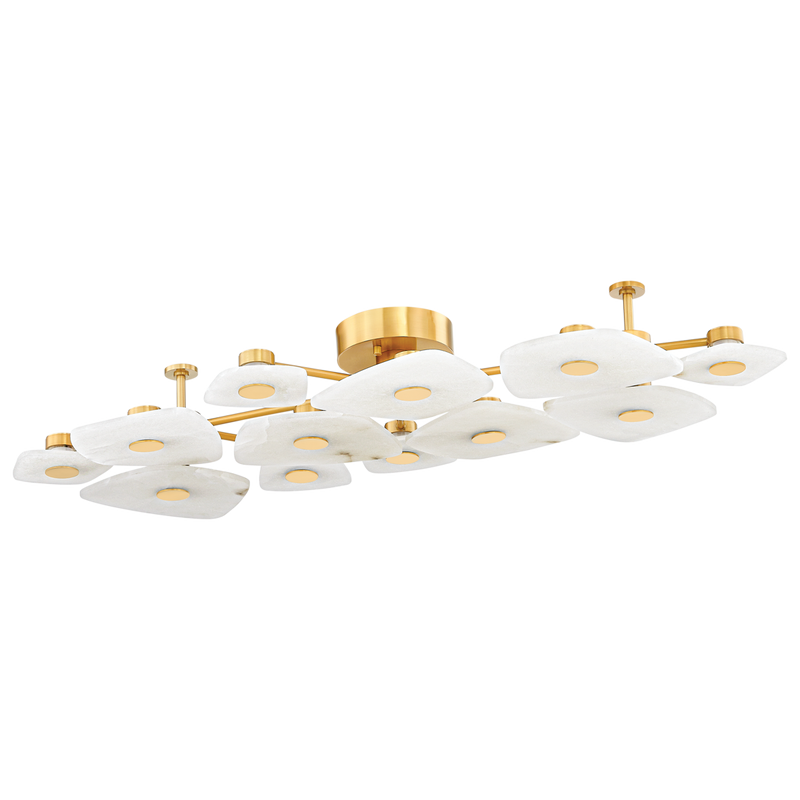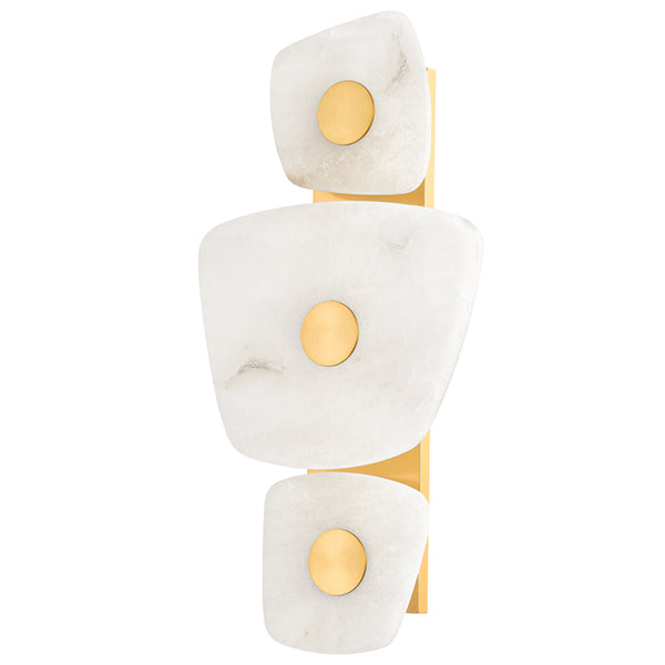 Marrying artistry with innovation, slabs of natural alabaster are illuminated by LED technology in this enchanting fixture. Supported by an Aged Brass framework, each alabaster shape is entirely unique, enhancing the bespoke nature of the composition. As a sconce or semi-flush in two sizes, Holmdel is a treasure of modern design.