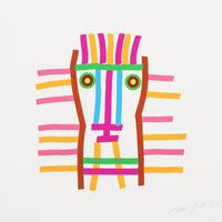 I volti, uno is a limited edition seven-colour silkscreen print. The series of prints entitled “I Volti” is inspired by the video “Giocosa Mente”, “a work for moving images” created by Paladino as a tribute to Bruno Munari for the 100th anniversary of his birth. With simple, bright colored marks and lively shapes that express both energy and emotion this print emits that sense of playful creativity that was typical of Munari’s work.