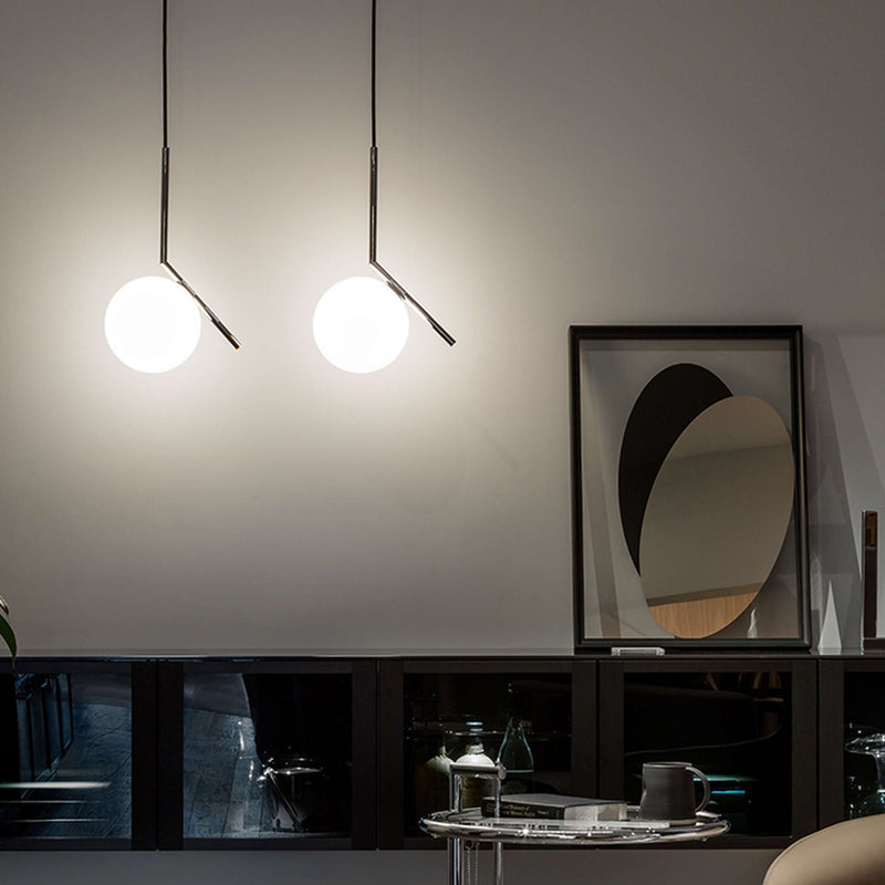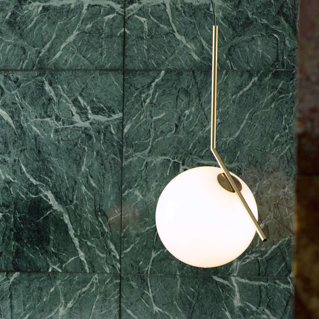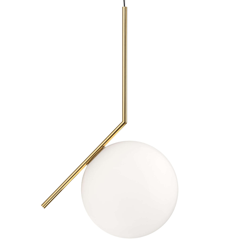Like the other pieces in the IC Light Series, the IC Lights S balances designer Michael Anastassiades' love of industrial simplicity with intricate symbolism. Providing diffused light through an opal blown glass diffuser, this pendant light is framed in brass-finished steel. Inspiration behind the design: Poise is powerful: That's the message Michael Anastassiades offers with his IC Light Series. From the skillful balance of the sphere and baton that invokes thoughts of a dexterous juggler's act to the lamp's name-IC, a reference to the identity code used to evaluate immigrants entering the UK-the designer makes a commanding statement.