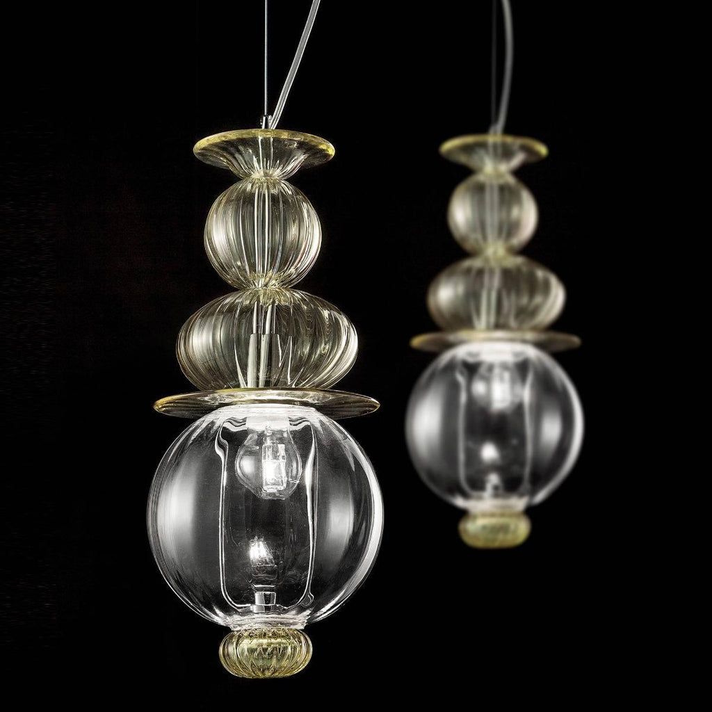 More than 10 years of valuable experience and respect for the Venetian tradition of glass production and processing, a group of outstanding experts in various fields and the highest quality are the core of the Sylcom brand. The combination of such unique light perception with technology and craftsmanship has contributed to Sylcom’s international success. Their wide range of products includes lighting inspired by royal splendor, but also more contemporary solutions and classic elegance. Sylcom products are known for their hand-blown glass and unique compositions.Inspired by the Venetian glassmaking tradition, the Igloo Pendant adds an elegant charm to the modern interior decors of eclectic homes. This pendant light comprises a blown-glass disc and globes that create a lovely pattern. This light with an E14 light bulb will surely add an elegant touch to the living or dining room. Available in stunning polish chrome and polish gold finish, it is available in multiple colors, such as milk-white clear, topaz, blue denim, clear, smoked, grey, and 24kt Gold to complement your décor scheme.