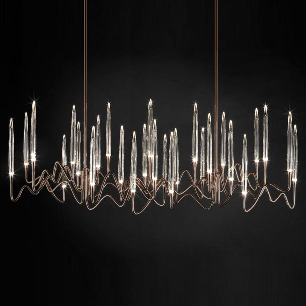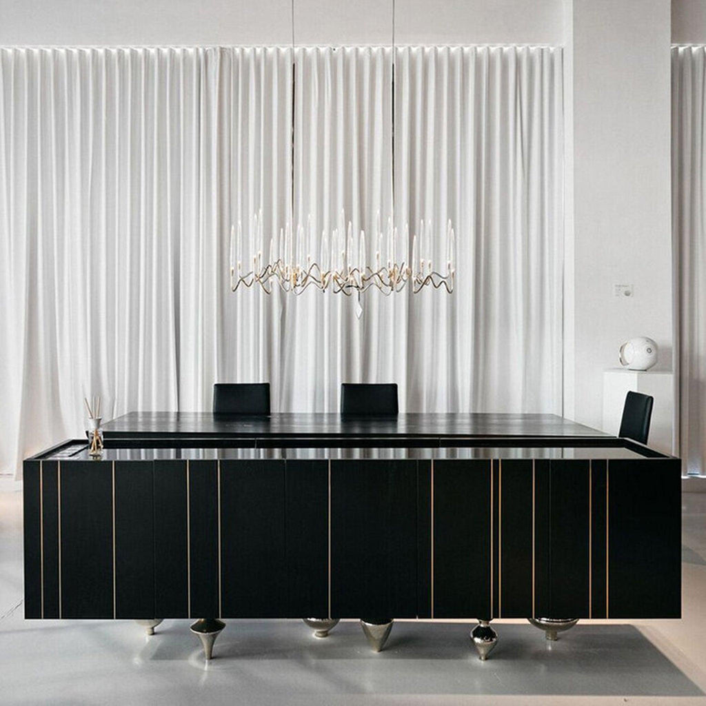 Inspired by Arabic calligraphic art and the icon of the classical candelabrum is Il Pezzo 3, a collection of lamps with a hand-forged brass structure and elegant “candles” crafted from the clearest solid crystal. The candles are illuminated using the latest LED technology, creating a sophisticated and romantic light. Each lamp is numbered and hides its own identity stamp that seals and guarantees the authenticity and uniqueness. Available in custom sizes and finishes.