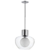 Ominous glows of LED illuminated glass spheres appear behind glass shades that are opaque when not lit. These deformed sphere shapes of glass are purposely oblong and available in either Mirror plated glass or etched Satin White. They are paired with metalwork in Gunmetal or Natural Aged Brass and include lighting that can be mounted as wall sconces or ceiling lights with additional pendant options that feature a filigree cap perforated with retro dot cut-outs.