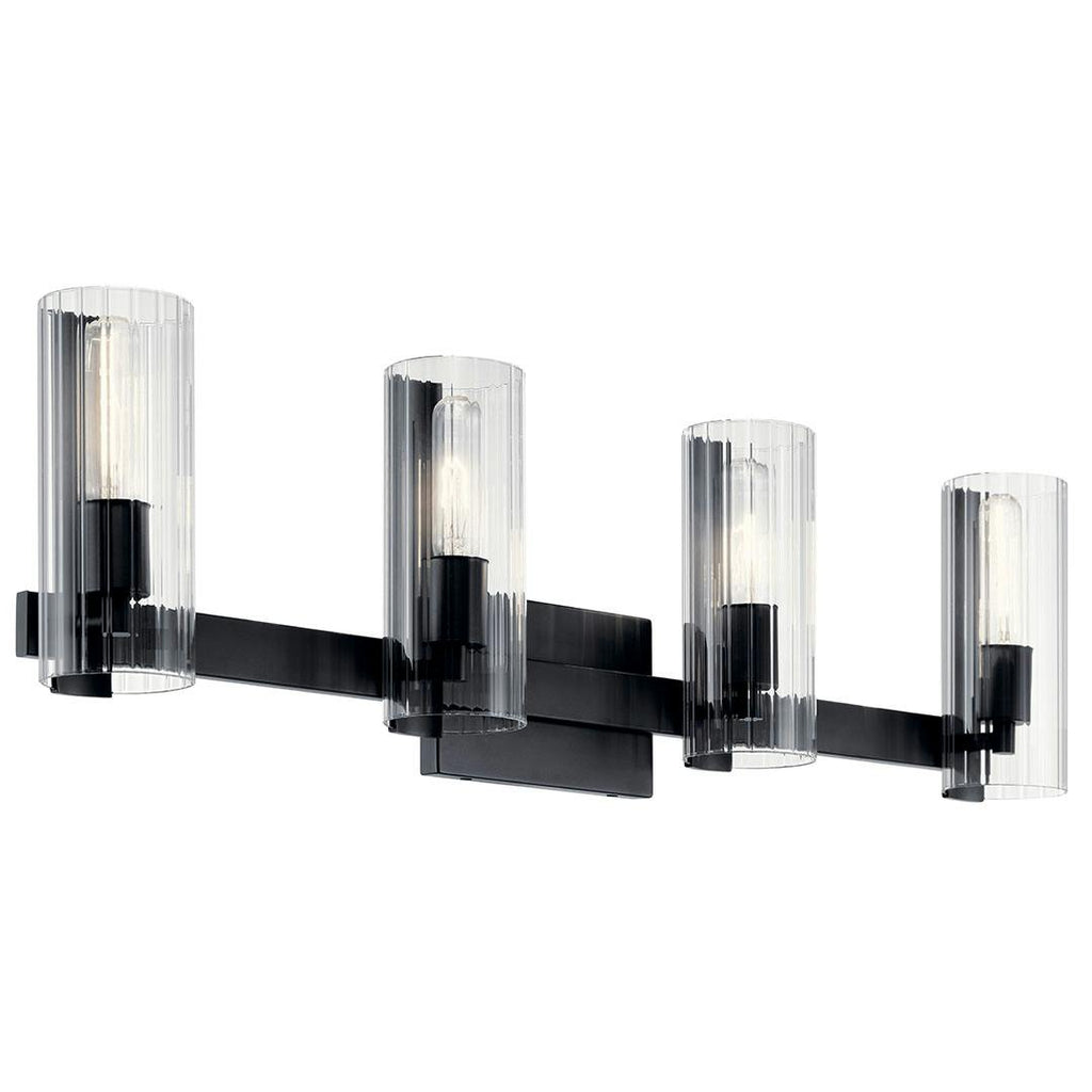 The Jemsa vanity's on-trend clear fluted glass exudes sophistication. Its refined finish effortlessly harmonizes with other hardware and decor. Transform your bathroom's atmosphere with a sense of modern grandeur. Equally gorgeous and flexible, Jemsa elevates your modern bathroom in style. A warm, muted brushed gold finish, Jemsa 32 Inch 4 Light Vanity Light is elegant and timeless with a refined matte sheen. Its clear fluted glass produces a unique lighting effect. Requires two T10 or A19, E26 medium base, 60W max bulbs or equivalent LED bulbs, not included. Mount with glass facing up or down. Perfect size for over a single vanity or use two for a dual vanity setting in your bathroom or powder room.
