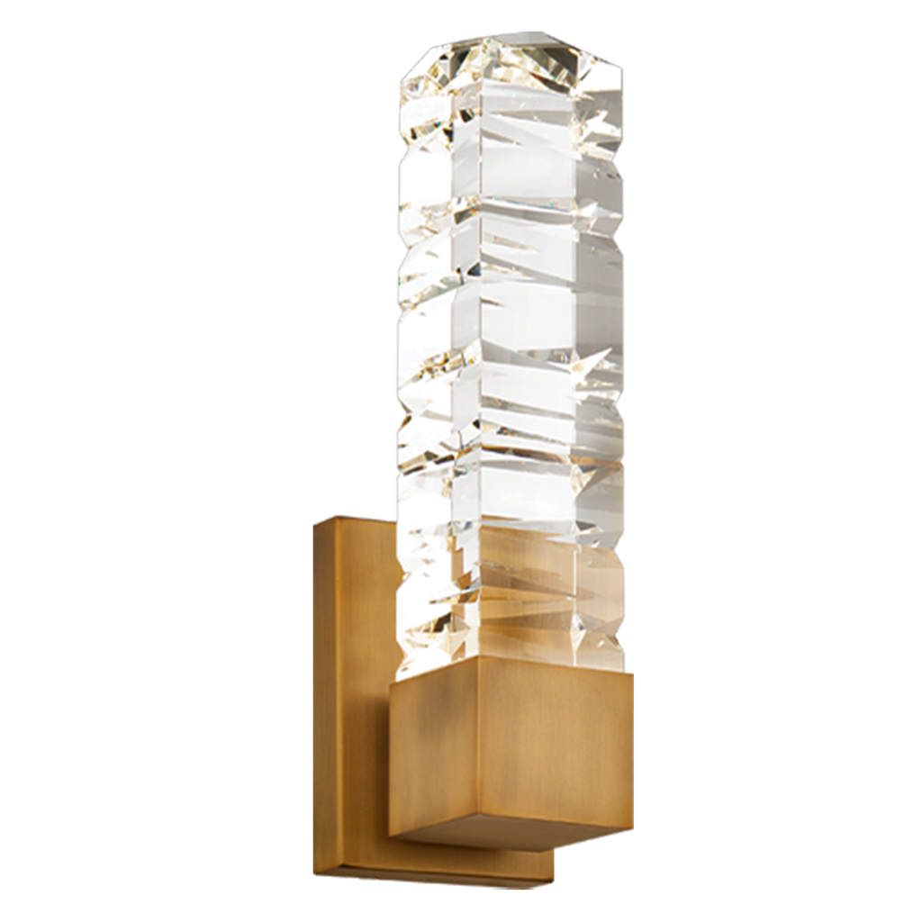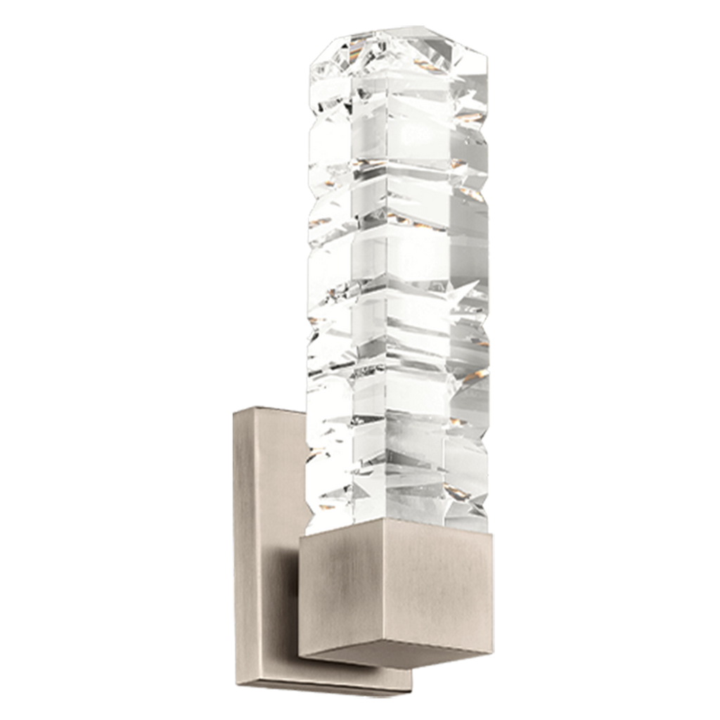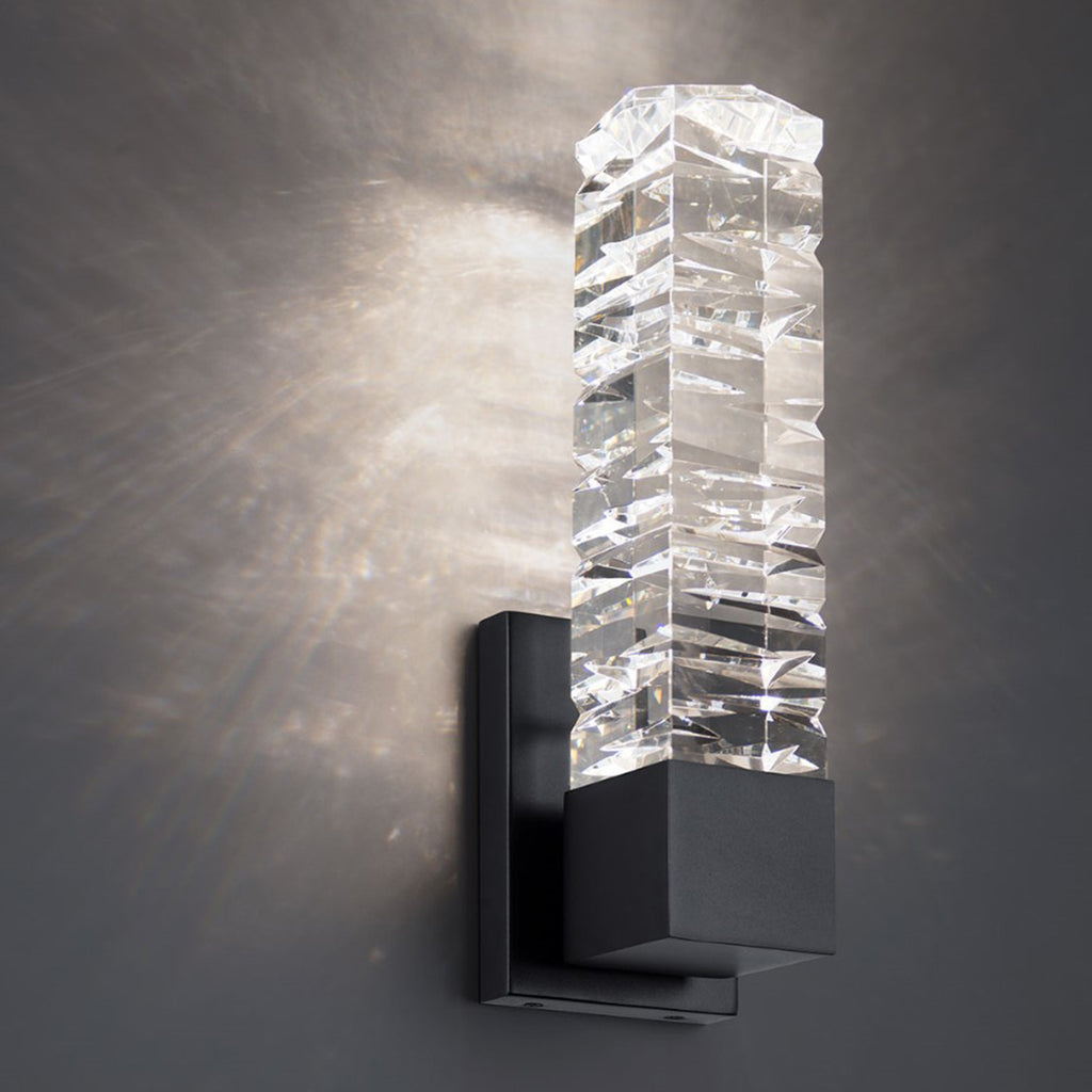 A chiseled luminaire with a captivating sculptured texture. This design features solid faceted crystal spears dramatically carved for a prismatic impact. A luxury design engineered for enduring beauty and longevity.