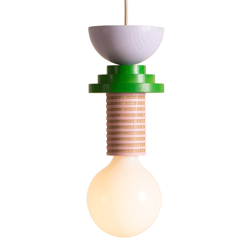 The geometric shapes and intense color palette of the Junit lighting draws inspiration from the Bauhaus movement. By a playful use, the eight different elements of the versatile lamp can be freely combined and spark creativity. Either with a self-composed version or an exclusive compilation of the designer, the lighting brings personality into any home. The bulb complements the colorful lamp with its oversized, milky glass which produces warm, ambient light.