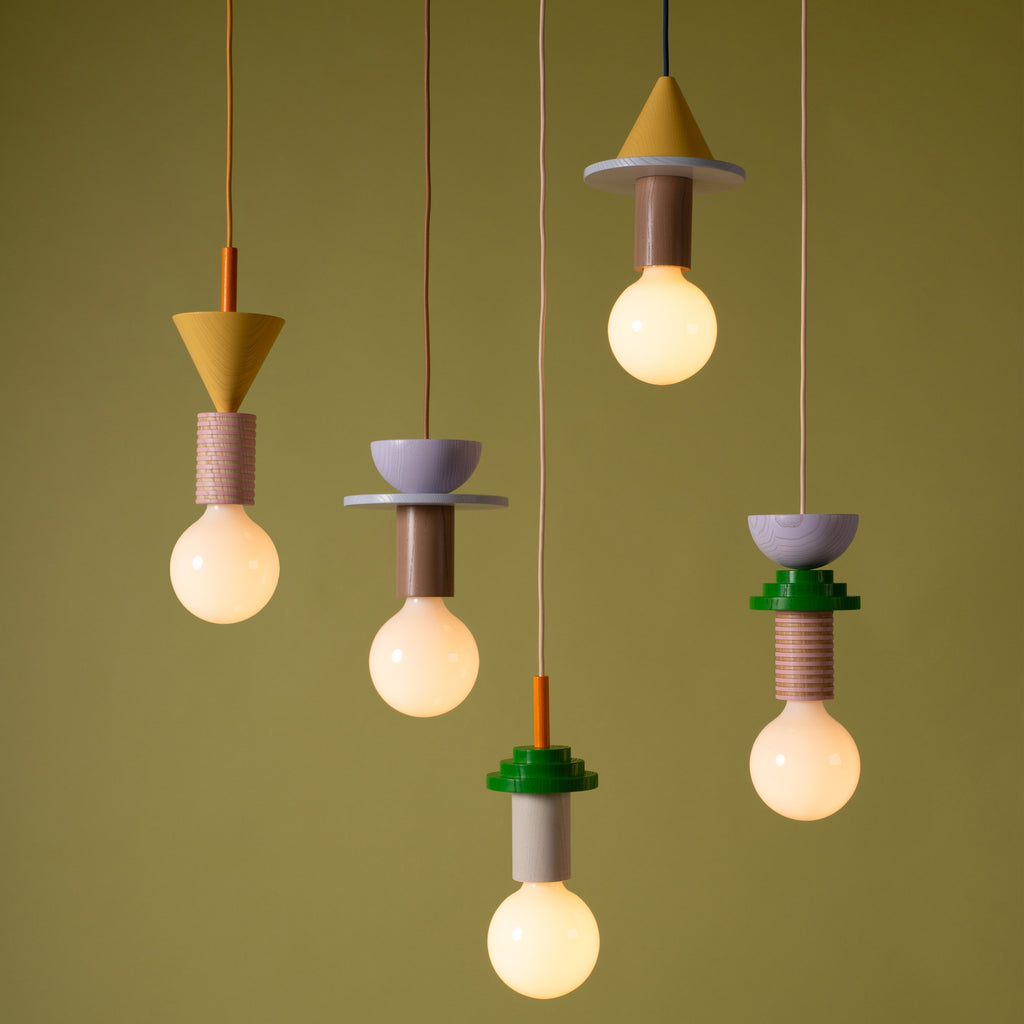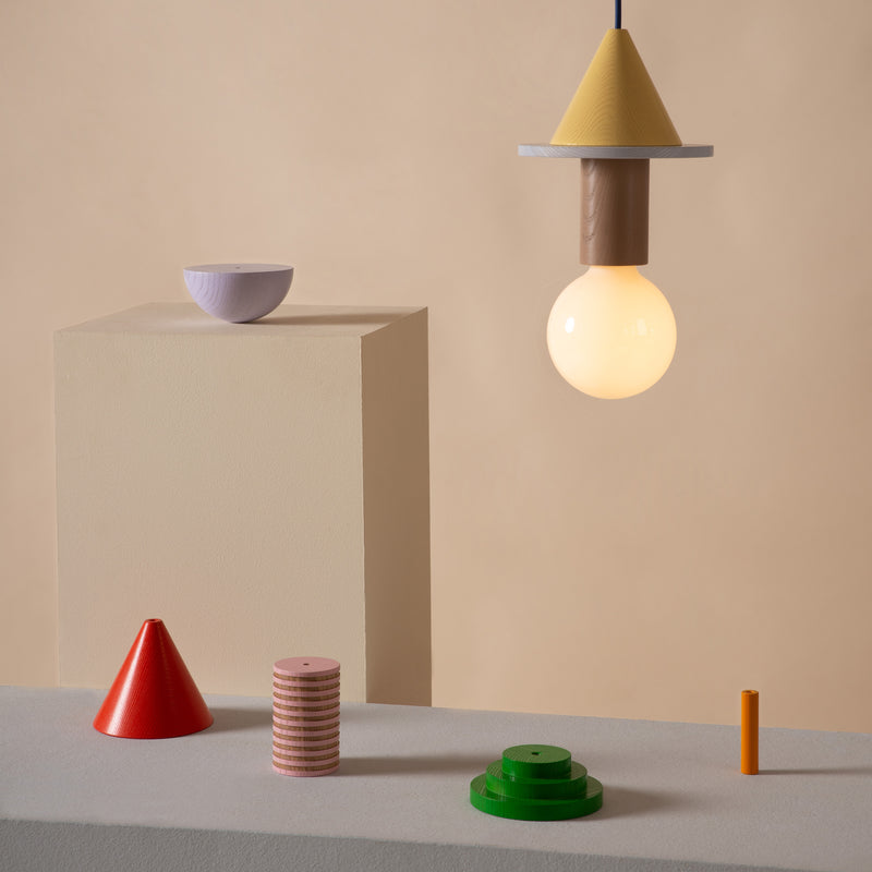 The geometric shapes and intense color palette of the Junit lighting draws inspiration from the Bauhaus movement. By a playful use, the eight different elements of the versatile lamp can be freely combined and spark creativity. Either with a self-composed version or an exclusive compilation of the designer, the lighting brings personality into any home. The bulb complements the colorful lamp with its oversized, milky glass which produces warm, ambient light.
