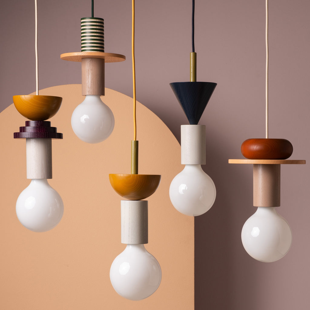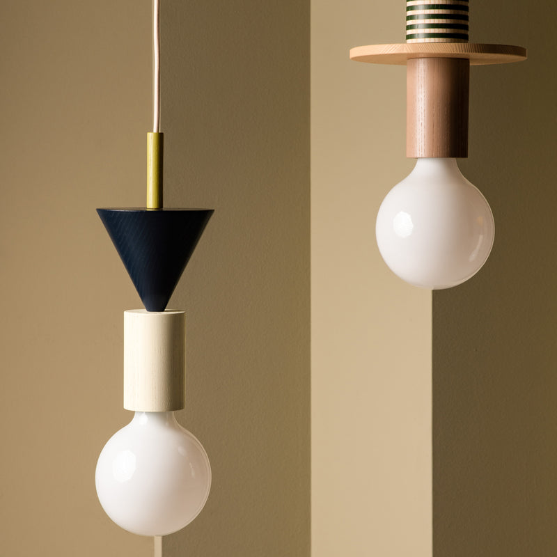 The geometric shapes and intense color palette of the Junit lighting draws inspiration from the Bauhaus movement. By a playful use, the eight different elements of the versatile lamp can be freely combined and spark creativity. Either with a self-composed version or an exclusive compilation of the designer, the lighting brings personality into any home. The bulb complements the colorful lamp with its oversized, milky glass which produces warm, ambient light.