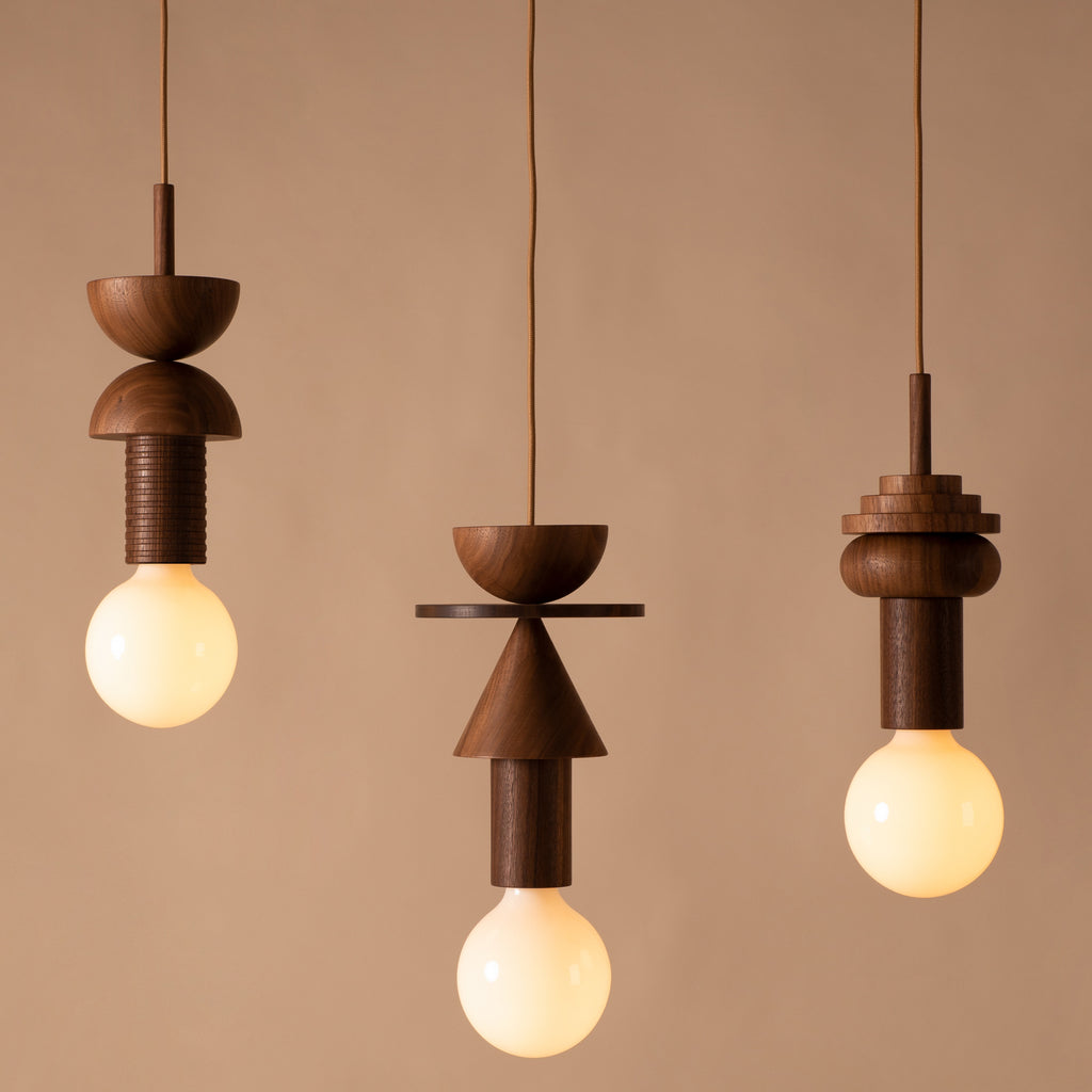 Our distinctive Junit lamp, inspired by the Bauhaus movement and usually known for its variety of colours, now gets the chance to express its abstract forms with full elegance through the warmth and naturalness of walnut wood. As a tribute to the triadic ballet, the three compositions that can be read as abstract figures of dance, reflecting the idea of the interaction of body and space.