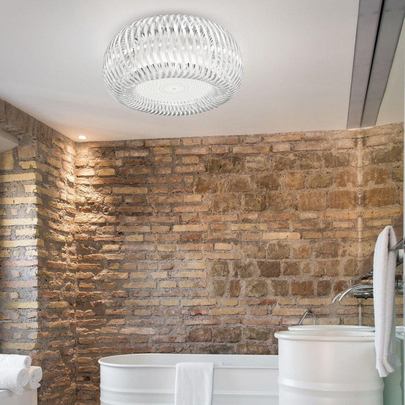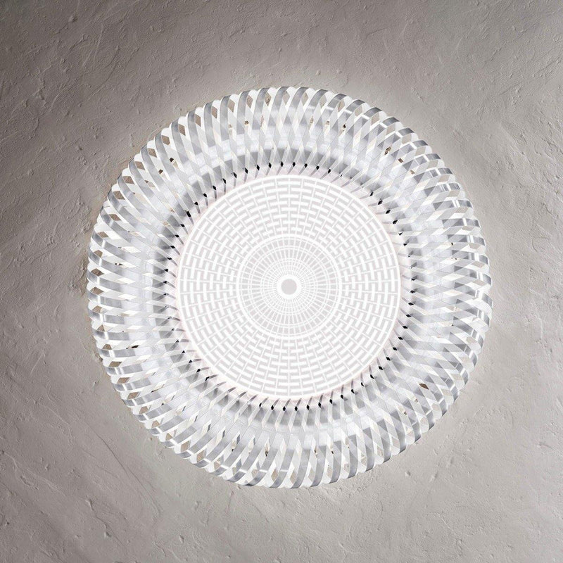 The Kalatos Ceiling Light from Slamp is an exquisite art décor to enhance the beauty of your living space. The collection takes its cues from the ancient art of weaving. It depicts a part of prehistoric era in the form of cane sacks and baskets. The ceiling light allows you to revisit this ancient archetype with a modern touch. It is available with E26 light source. This ceiling light is available in prisma and black/gold color.