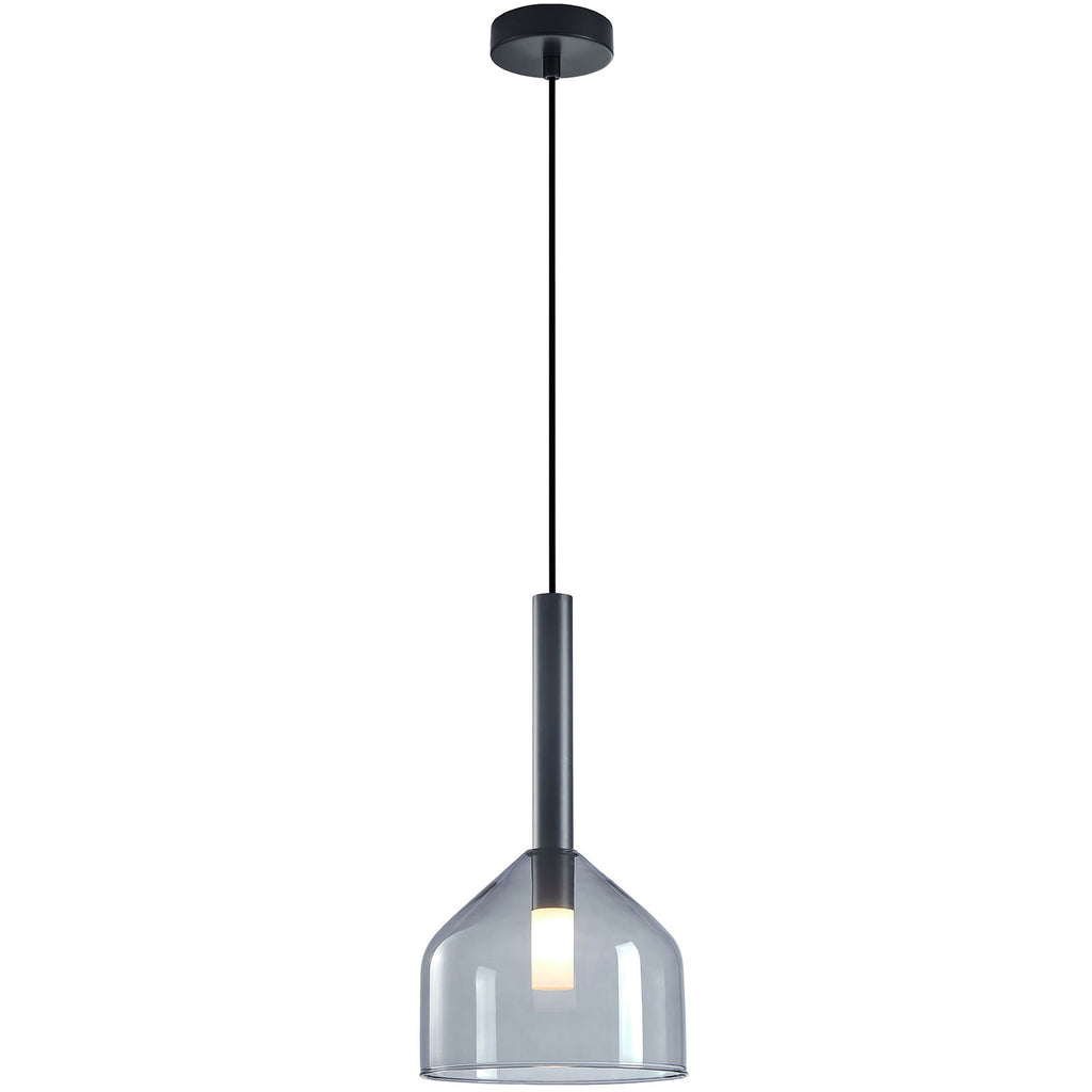 The Kali collection showcases a captivating design, featuring lightly smoked glassware suspended with sleek black wiring. Each glass element has an interior white bulb cover, adding a touch of subtlety to the lighting and creating a soft, ambient glow. Single light pendant shown.