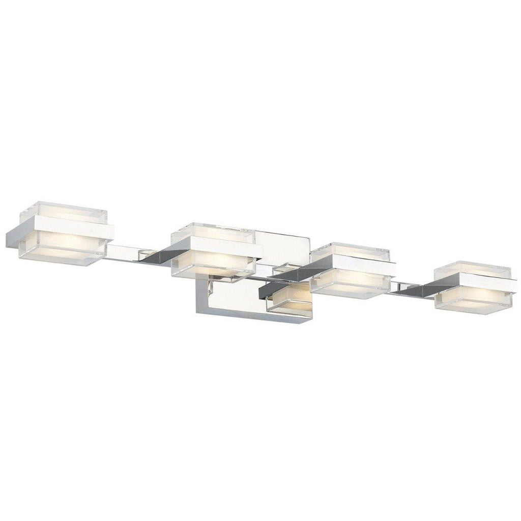 Bring a nice change to your bathroom interiors with the Kamden 4-Light Bath Bar by Tech Lighting. Featuring clean and symmetrical geometric shapes, this 4-light bath bar pleasingly blends with the décor and creates a warm and inviting glow in the powder rooms. Available in chrome and satin nickel finish options, this bath bar with LED lighting is crafted with square acrylic shades before they are placed onto a die-cast metal frame. This fixing allows the fixture to be placed horizontally or vertically for more diffused illumination.