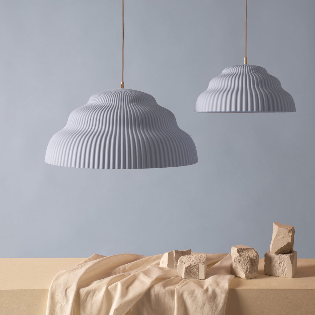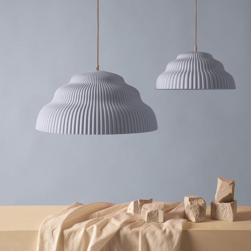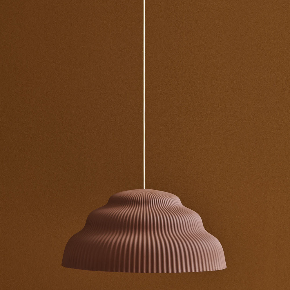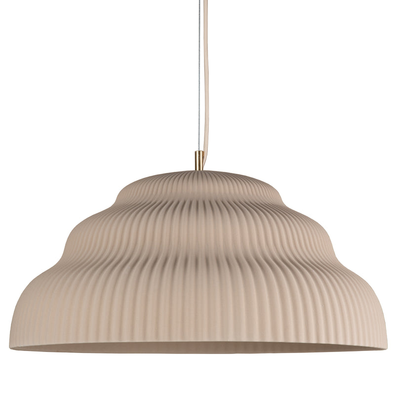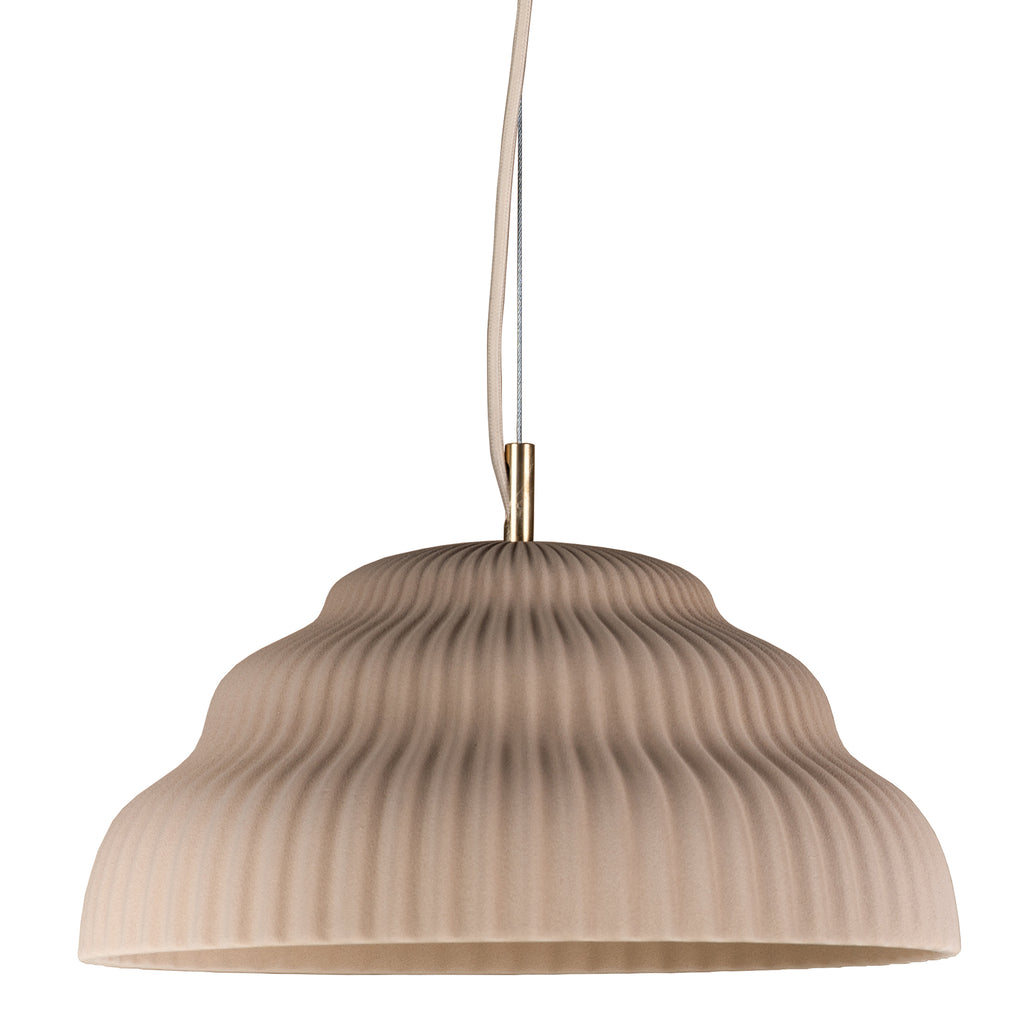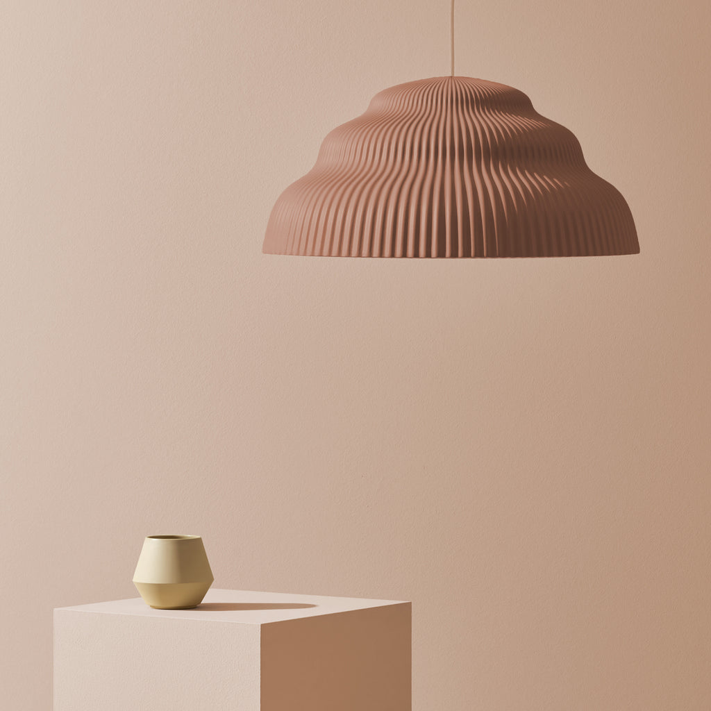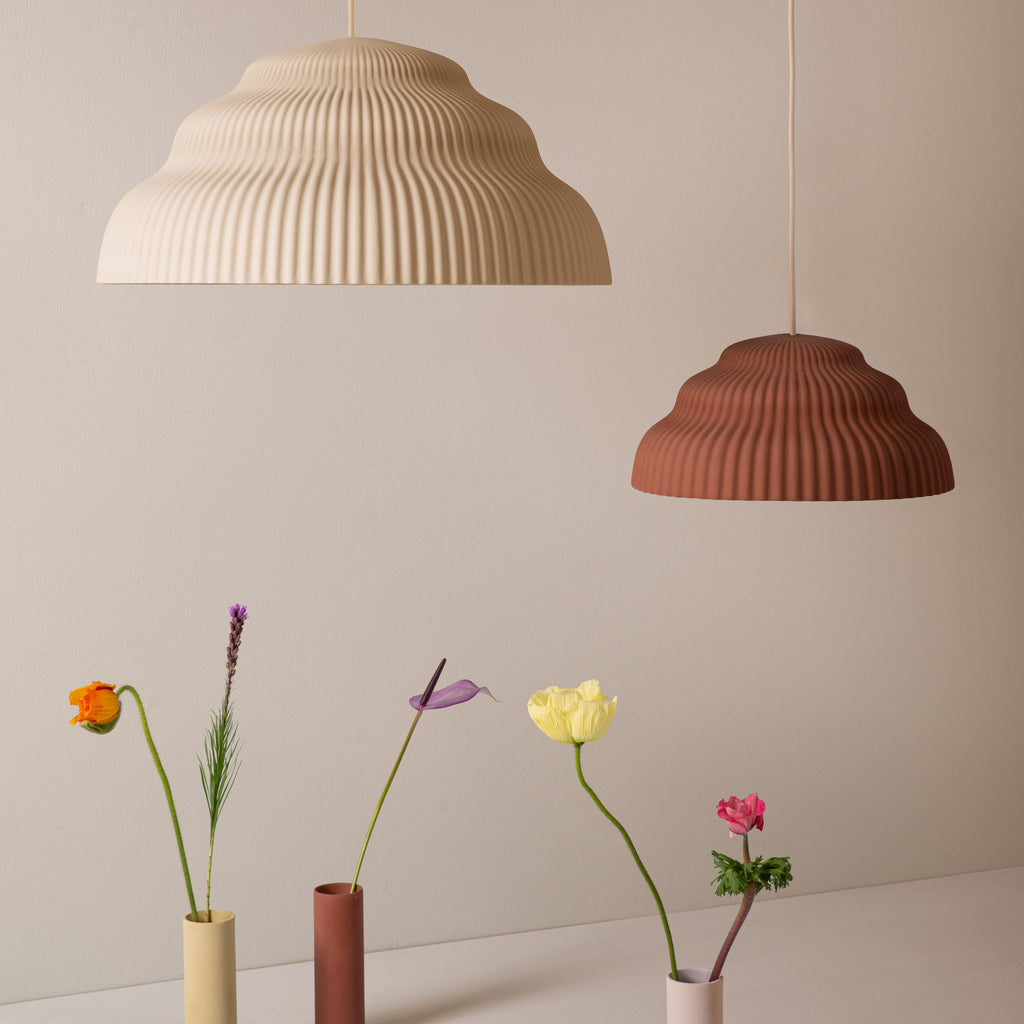 Bold rounded shapes and vivid waves are referencing to the flowing water of a cascade and define the silhouette of the Kaskad lamp. Hand casted of ceramic in three soft and earthy tones, the lamp shows off in a whole new light and elaborates a distinct visual feel, emphasized by its gently textured surface.