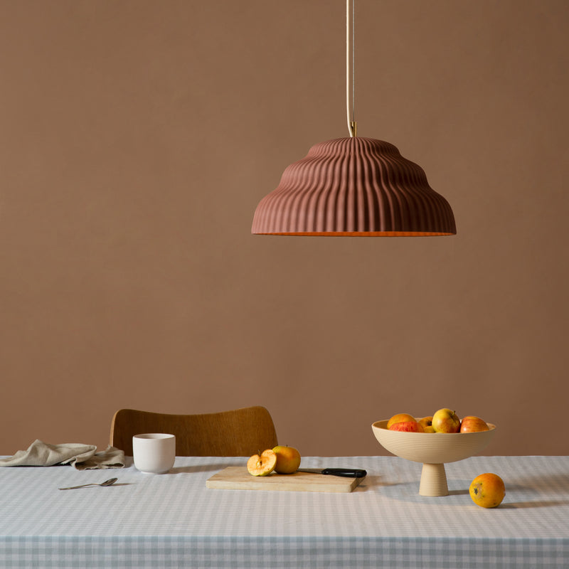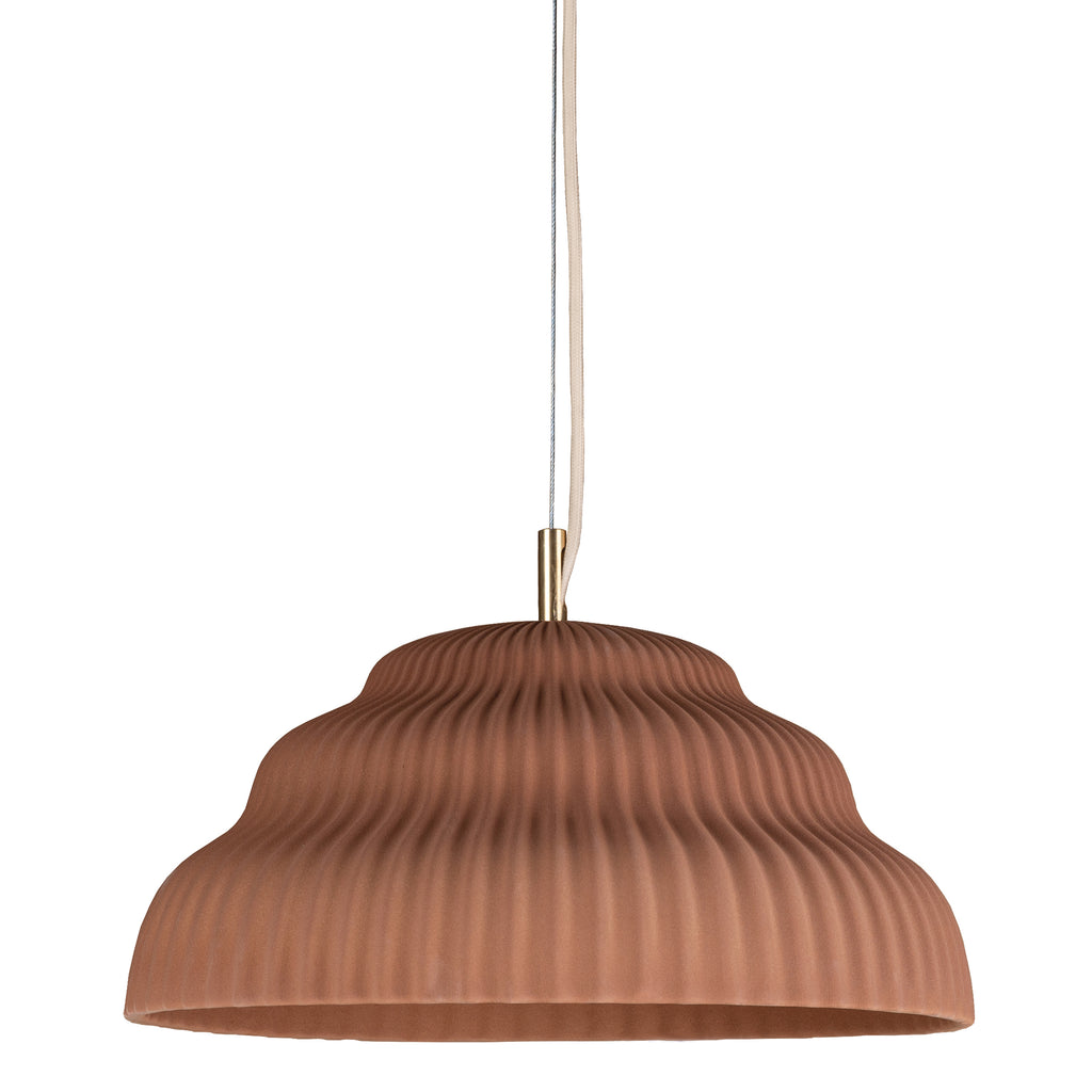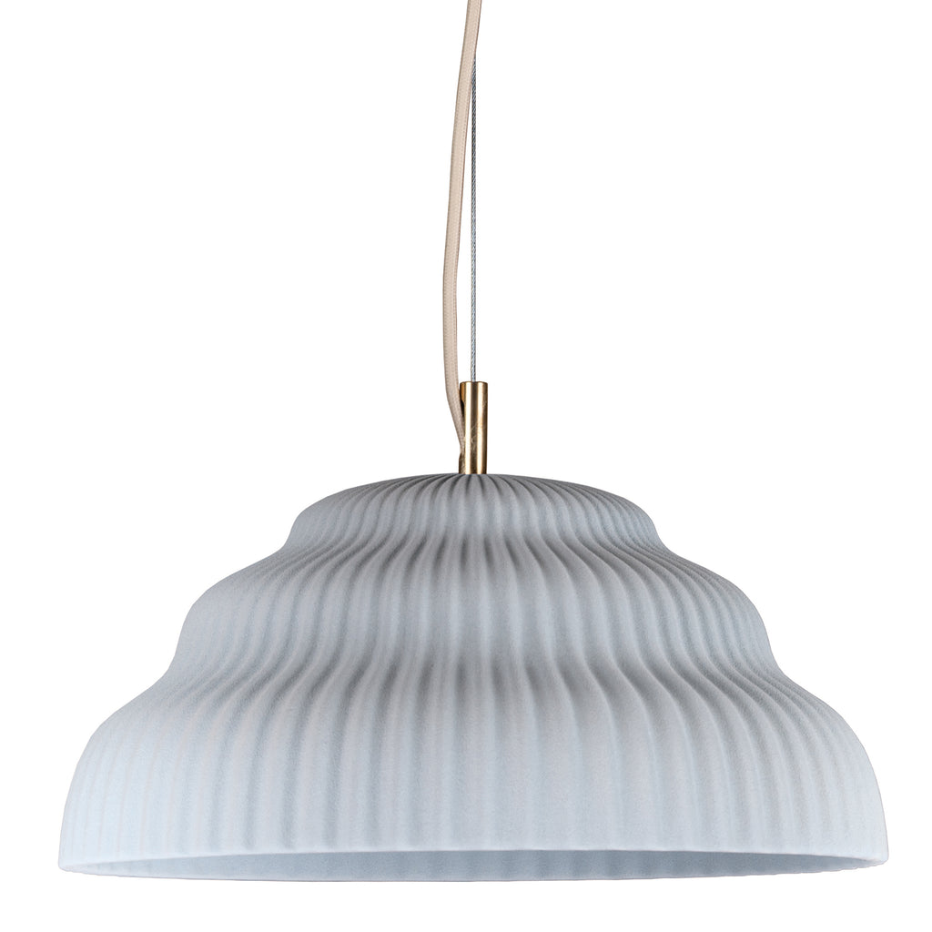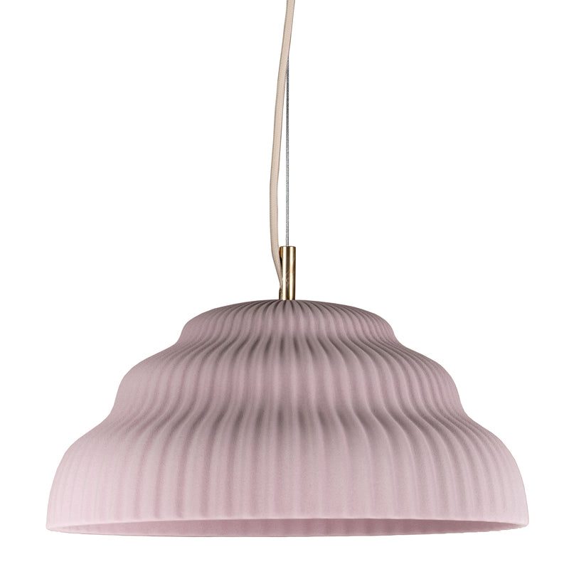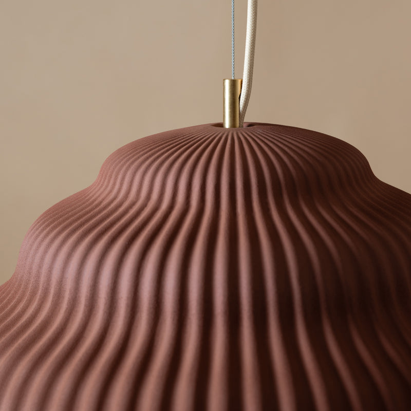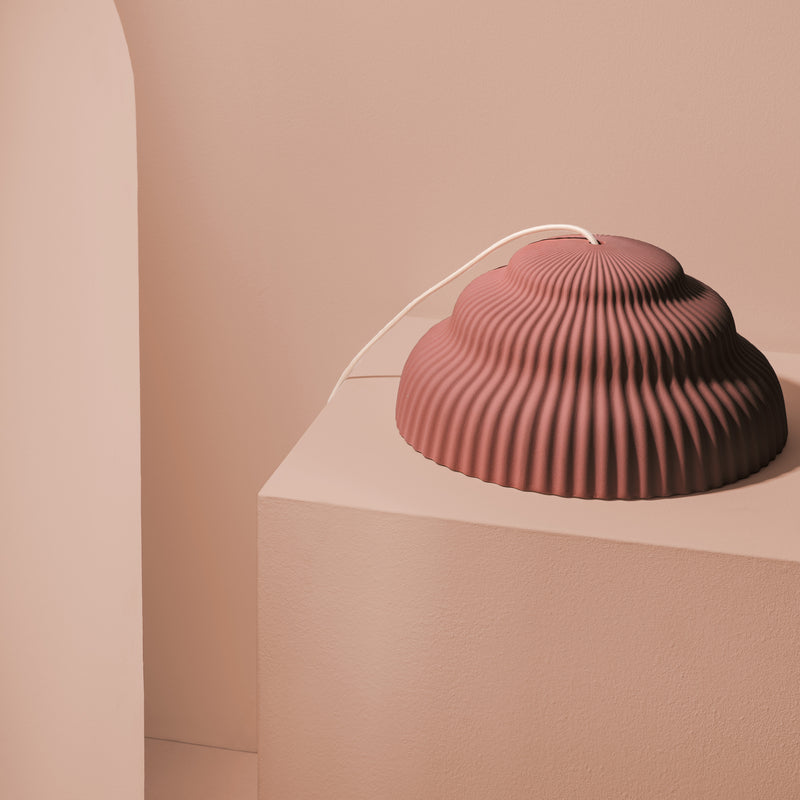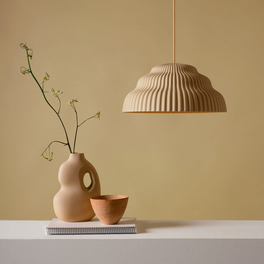 Bold rounded shapes and vivid waves are referencing to the flowing water of a cascade and define the silhouette of the Kaskad lamp. Hand casted of ceramic in three soft and earthy tones, the lamp shows off in a whole new light and elaborates a distinct visual feel, emphasized by its gently textured surface.