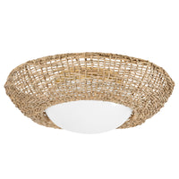 A basket-like shade made of hand-woven Abaca rope surrounds an opal glossy bulb in this stylish, modern flush mount. Designed to elevate traditional overhead lighting with rustic, coastal flair, Killington frames the light without reducing its efficiency. Enhancing an airy design style, it is unique and understated.