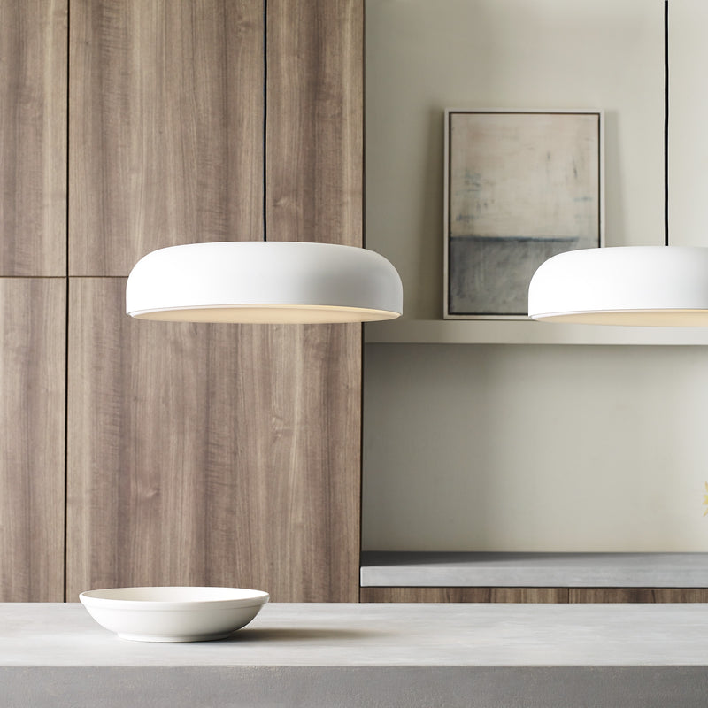Kosa 18 Line-Voltage Pendant by Sean Lavin for Tech Lighting is lighting designed to project modern simplicity. This dome-shaped pendant illuminates a smooth wash of light through an LED diffuser and generously fills the surface below. Generously sized with an 18 inch diameter, the Kosa is a great complement to any space.