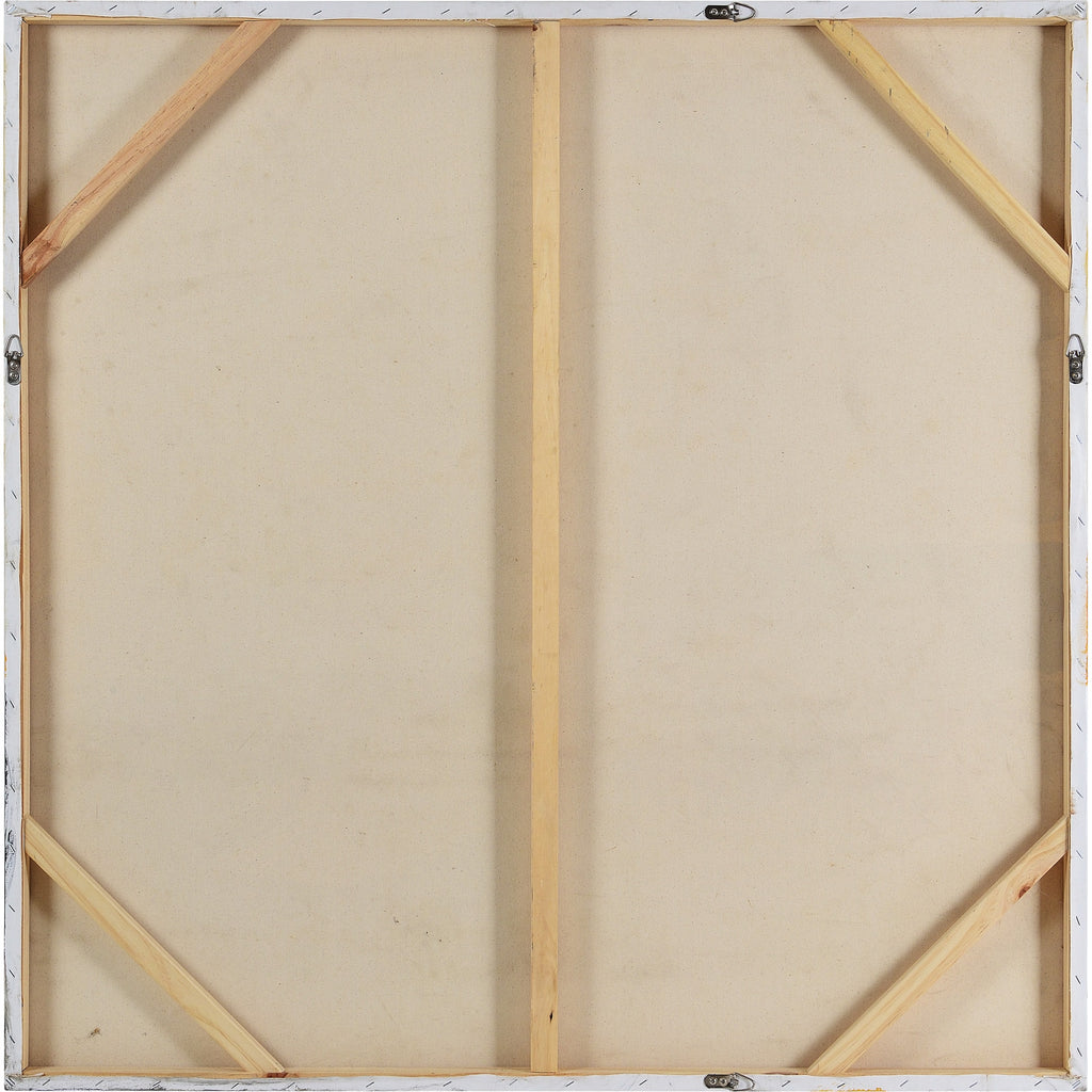 This work of art is abstract in nature but also brings the feeling of sunrise and sunset to the modern space. The heavy texture of the hand-painted strokes on the cotton canvas bolsters the personality of the piece to new heights. Set vertically or horizontally in the living room or bedroom interior, its square build means only the story will change, not the structure.