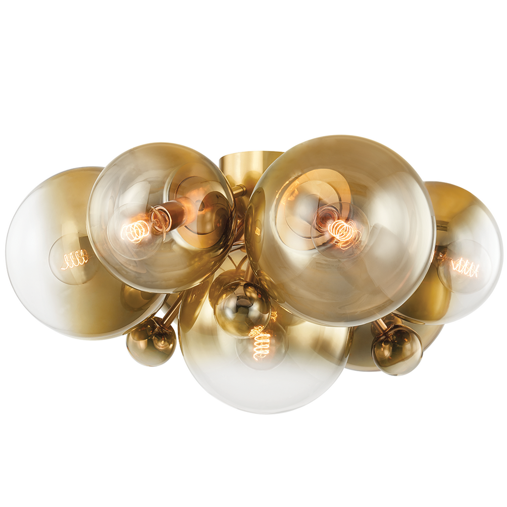 This showstopper features clusters of ombre glass globes in various sizes. Each orb transitions from brass to clear and the ombre lighting effect is simply stunning. Whether a chandelier, flush mount, sconce or linear, Kyoto will be the focal point in any space.