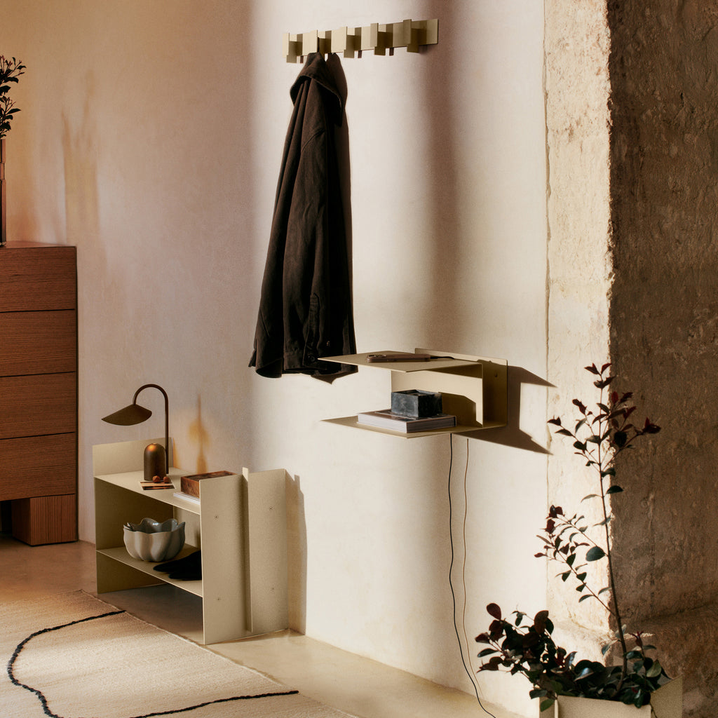 The Lager Coat Rack, part of the Lager Family, is named after the Danish word for ‘warehouse’ and draws inspiration from the industrial aesthetic of brutalism. Crafted from finely brushed aluminium sheets, this sleek and functional piece is designed for seamless wall mounting, offering an elegant yet practical space for jackets, coats, and other hangable items. Its minimalist form adds a bold, refined touch to any hallway.