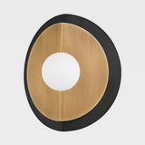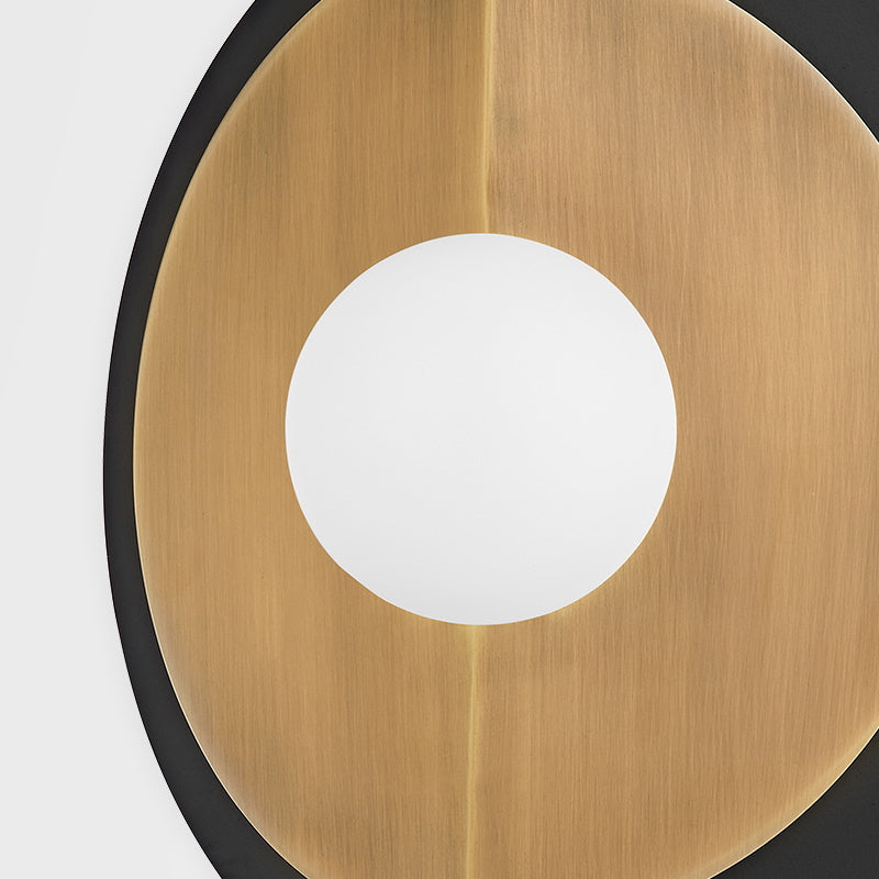 Smooth, sleek and effortlessly usable, Larson is simple yet sophisticated. A bulb takes centerstage at the point where two metal discs bend back towards the wall. The Patina Brass of the disc in front adds a glint of color that perfectly pairs with the more subdued Soft Black finish of the disc behind it.