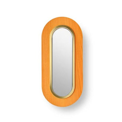 The Lens Oval Wall incorporates a central mirror that reflects the lamp’s surroundings. Placed vertically or horizontally, this lamp is an elegant addition to any room.