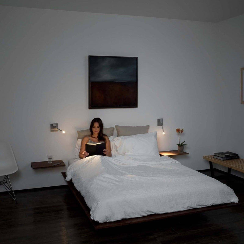 The Libri LED Swing Arm Wall Sconce by Cerno is an elegant night lamp that allows you to read in a bright light without having the night table or bedside feeling messy. This wall sconce is attached to the wall with a swing arm, which automatically switches the lamp on when pulled and switches off when pushed back. Technologically advanced, the lamp illuminates using an energy-efficient LED light source that lightens up sufficiently to help you read at night. Available in oiled walnut, white and brushed aluminum finishes, the fixture can be installed with hardwire or simply plugged in. You can position it right or left, the flexible arm would be efficacious either way.