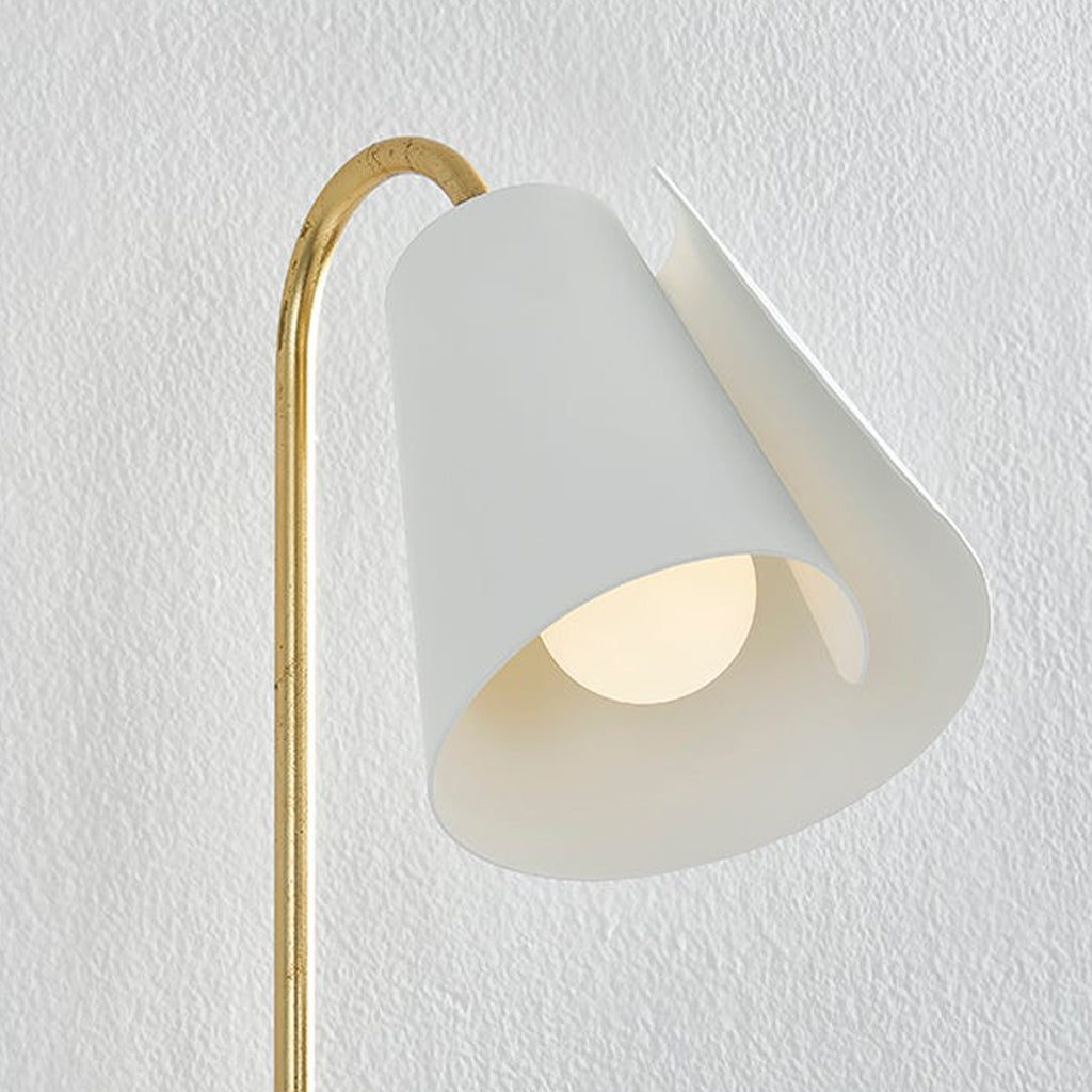 A spray of flower forms elegantly springs from the striking Lila. Reminiscent of a simplified calla lily bud, each bloom is defined by a coiled metal shade in a Textured White finish, supported by Gold Leaf ‘stems. Arranged at varying heights, the arched flowers create a sense of dynamism within the fixture. Available as a chandelier or sconce, Lila is a joyful celebration of curved edges and vintage silhouettes.