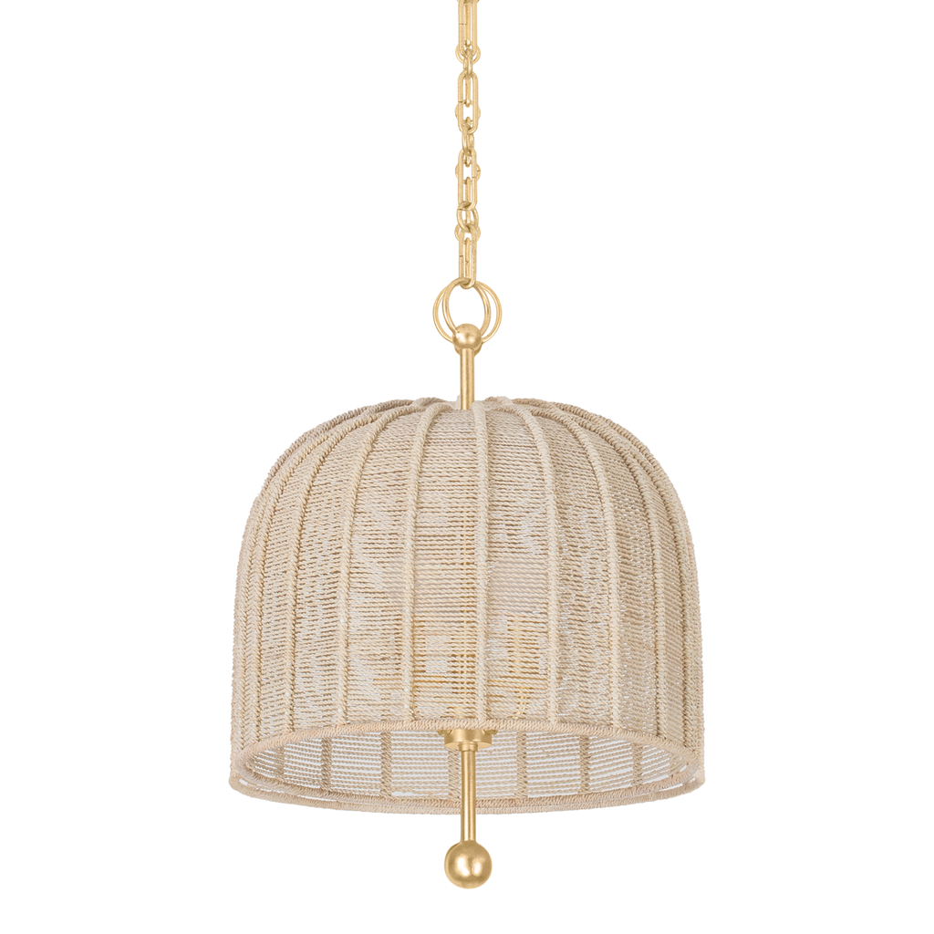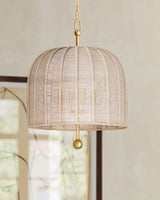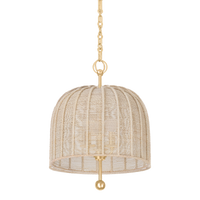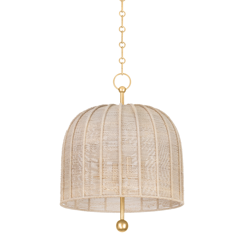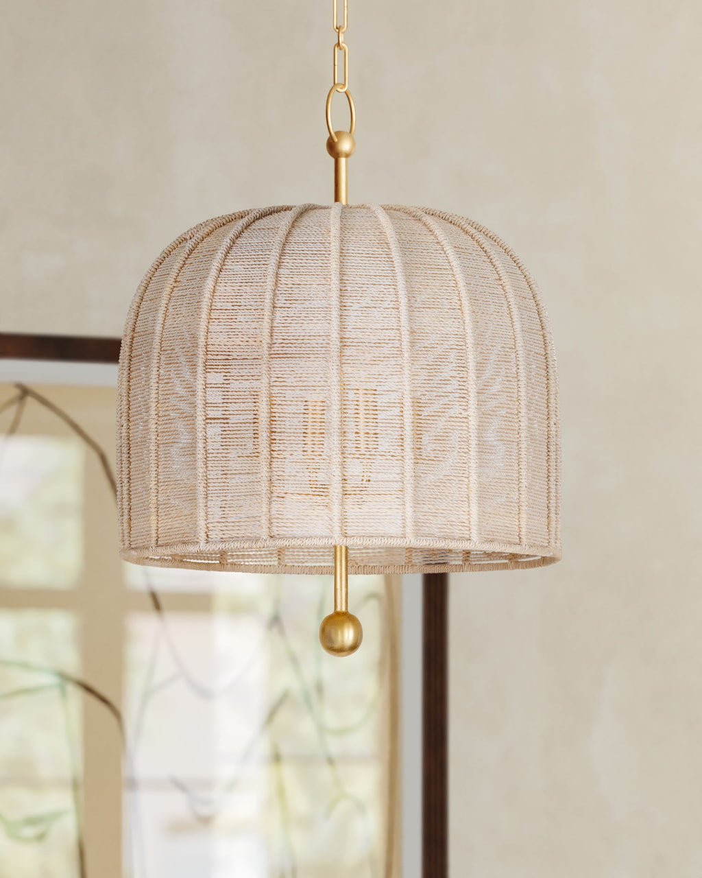 Tipping its cap to designer Hans-Agne Jakobsson, Lonnie rethinks the materiality of his classic umbrella-shaped shade. In this interpretation, the frame of the shade is wrapped in Bleached Abaca rope, allowing light to pass through. As a design detail, the Vintage Gold Leaf stem suspending the shade appears to pierce through the entire fixture, finishing in a decorative sphere. Lonnie is available in two sizes with 3 or 4 lights.