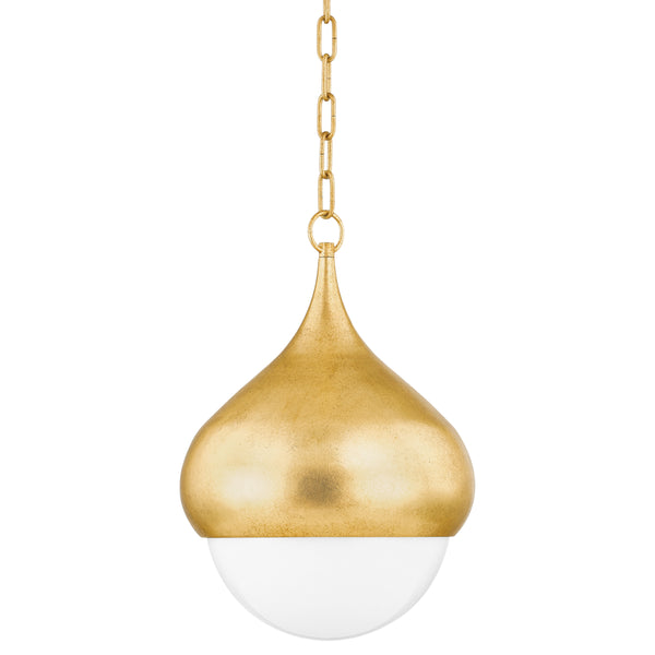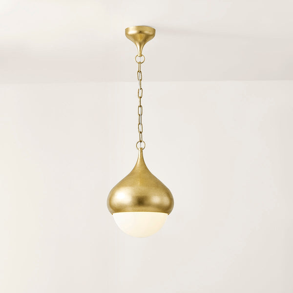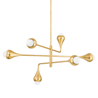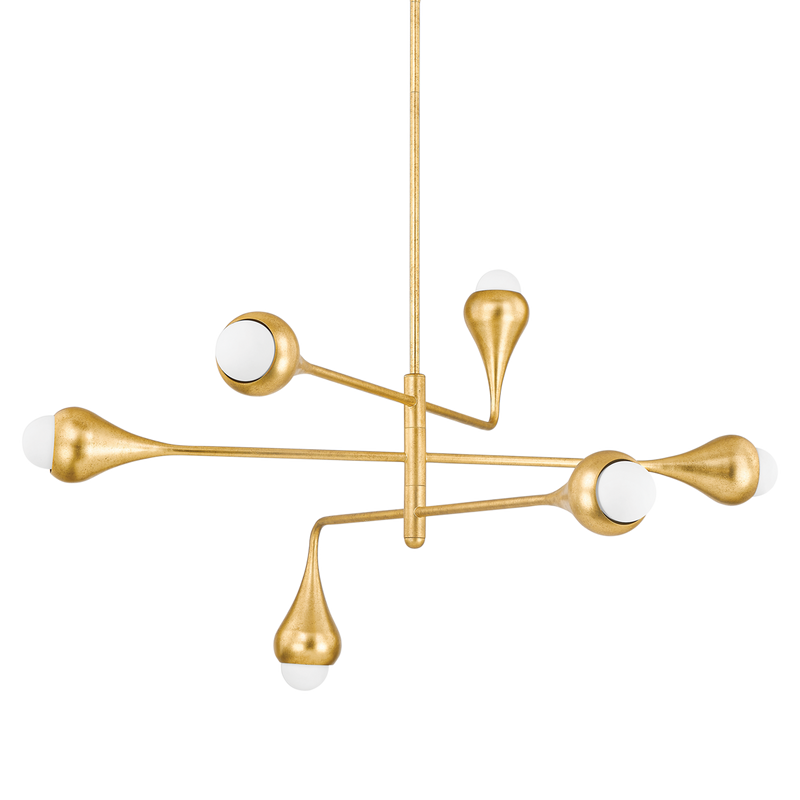 Inspired by an acorn growing on a branch, Luciel features gently curved forms, soft Opal Shiny Glass shades, and a luxurious Vintage Gold Leaf finish. The refined, jewelry-like aesthetic of the fixture is elongated to create a surreal, otherworldly representation of nature. Luciel is available as a sconce, chandelier, and pendant.