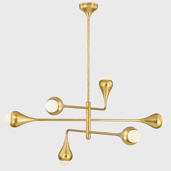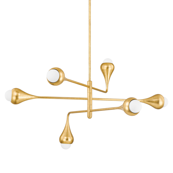 Inspired by an acorn growing on a branch, Luciel features gently curved forms, soft Opal Shiny Glass shades, and a luxurious Vintage Gold Leaf finish. The refined, jewelry-like aesthetic of the fixture is elongated to create a surreal, otherworldly representation of nature. Luciel is available as a sconce, chandelier, and pendant.
