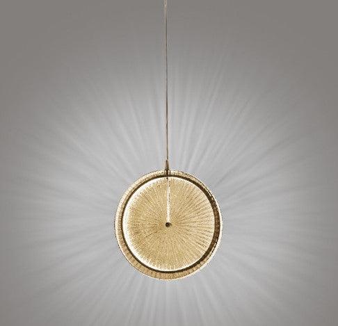 With the Lulu Pendant, a classic design gets a modern twist. This gorgeous pendant is designed from molten glass that is poured over a surface that moves from the center to the edges by forming concentric circles. Its unique silhouette is defined by a ring-shaped element. The attractive light is sure to decorate the living spaces with its unique charm. You can select this light with LED bulb in small or large sizes. Both the brushed black and brushed gold finish looks dramatic and you can pick the desired finish. It is available in various color choices like clear, amethyst, denim blue, smoked, ocean, and more.