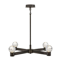 Lyric takes a modern approach to traditional spoked shapes with a strong crossed-bar design, ending in luminous optic crystal glass spheres. Fully dimmable integrated LEDs shine through each globe, casting captivating refractions and soft light throughout your space.
