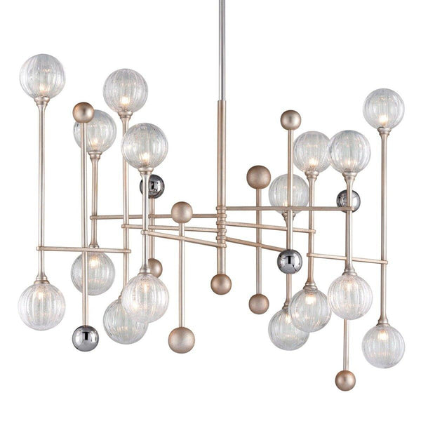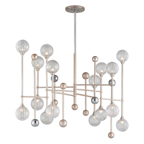 Elegance with a tinge of aesthetic appeal comes alive with the Majorette Wall Sconce by Corbett Lighting. Having a lustrous shine, this wall sconce has 3 bulbs of 40 Wattage. A 5-inch canopy featuring a glass shade graces Majorette for a stunning appeal, while the G9 wedgebse LED socket type illuminates the space. This unique wall sconce comes in a silver leaf with polished chrome accents. Evoking a classy feel, this light source is a subtle addition to the interiors. The asymmetrical design is the highlight of this wall sconce.