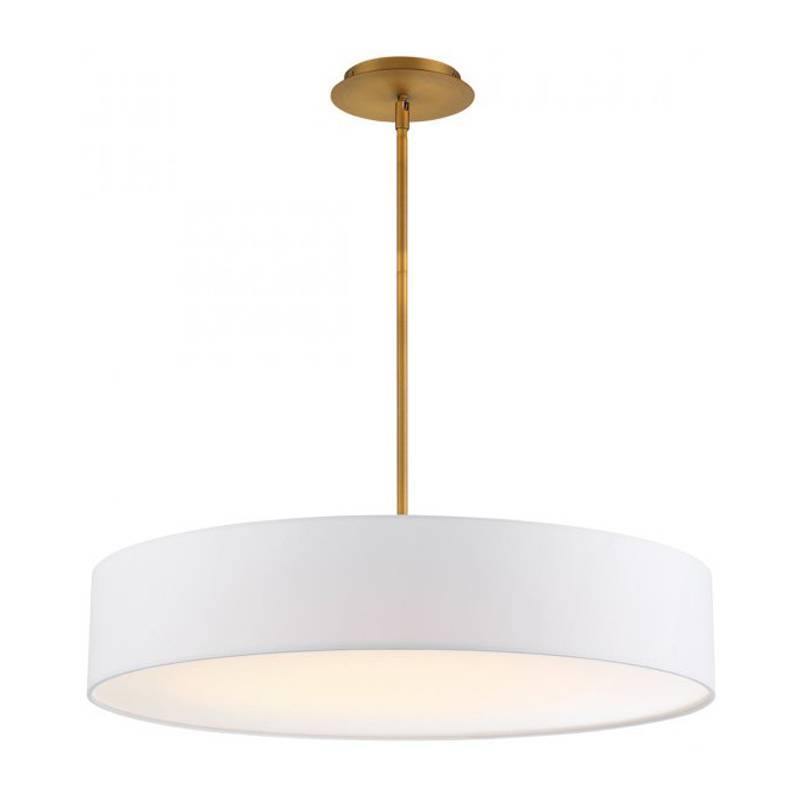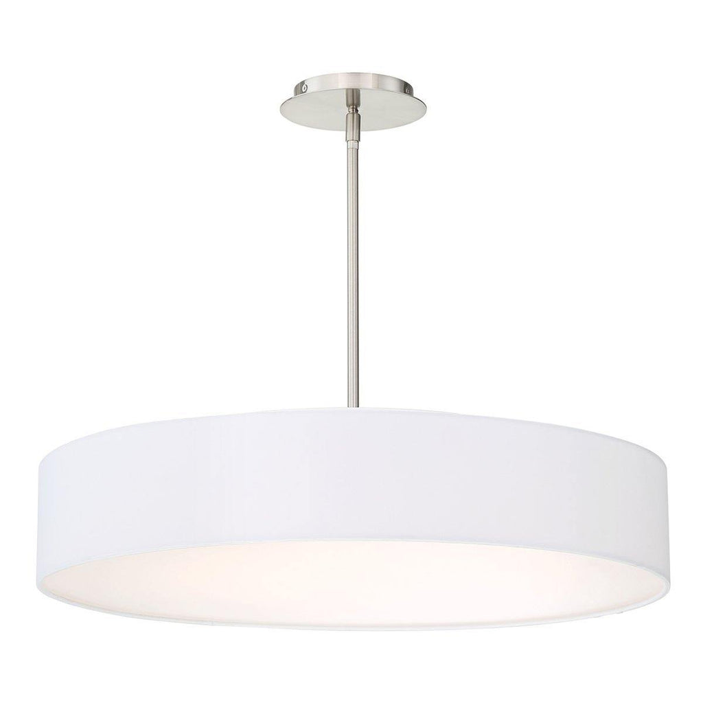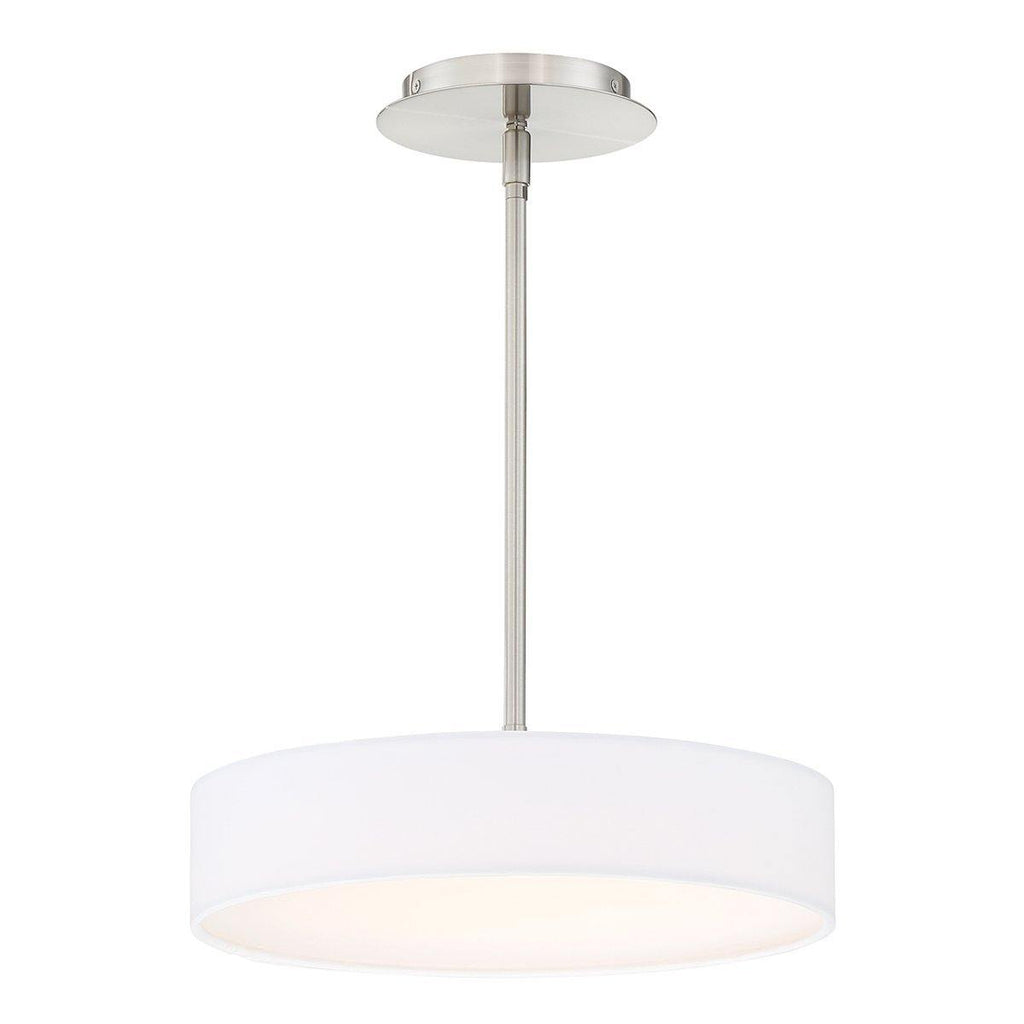 The Manhattan dweLED Pendant by WAC Lighting adds a charm and softness to your interior with its minimal design. Its circular fabric shade accommodates an LED light which offers illumination up to 2700K and color rendering index up to 90CRI. This produces a warm yellowish light and creates a soothing environment. This pendant looks perfect with contemporary interiors. Its simple design makes it ideal for homes and offices. You can mount it to the sloped ceilings without any hassle as it comes with an integral swivel. This small, medium, and large-sized pendant have brushed nickel finish which complements any interior color.