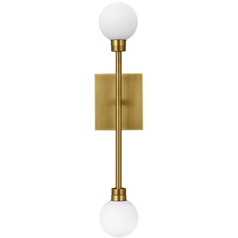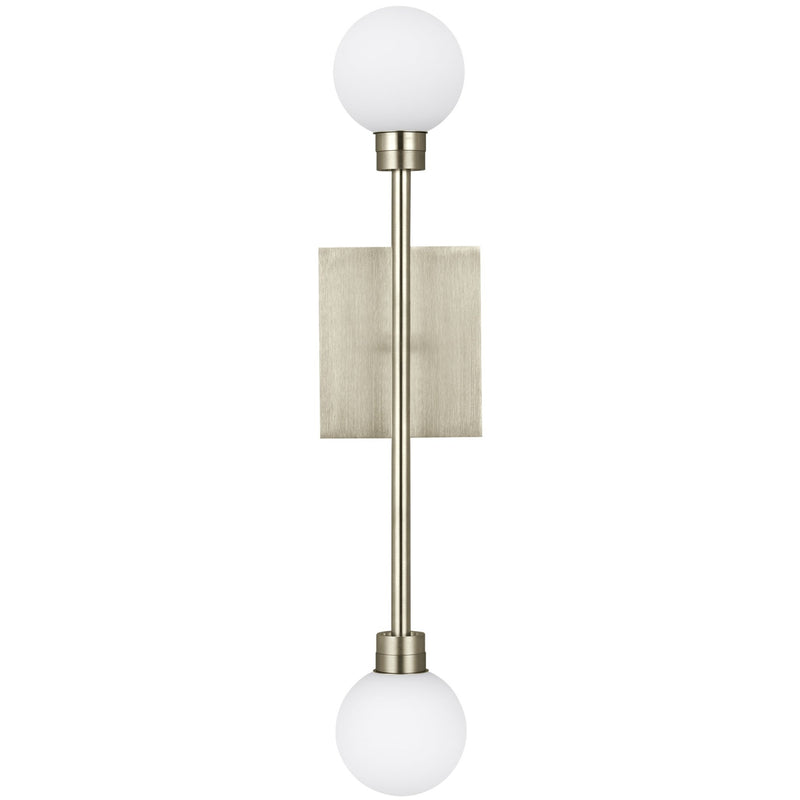 The Mara Wall Sconce by Sean Lavin for Tech Lighting features two frosted glass orbs adding charm as the LEDs illuminate through diffusers. Available in modern finishes. Mounting options include vertical or horizontal, great for any bathroom or vanity lighting. Lamping options are compatible with most dimmers.