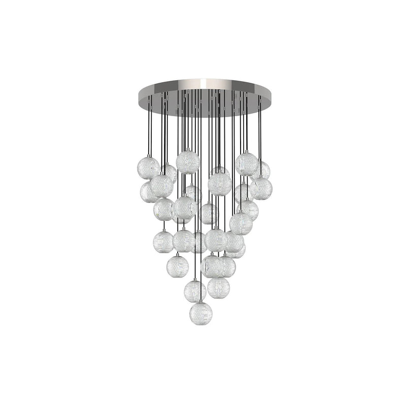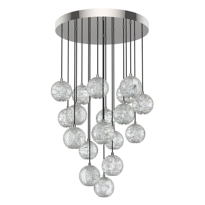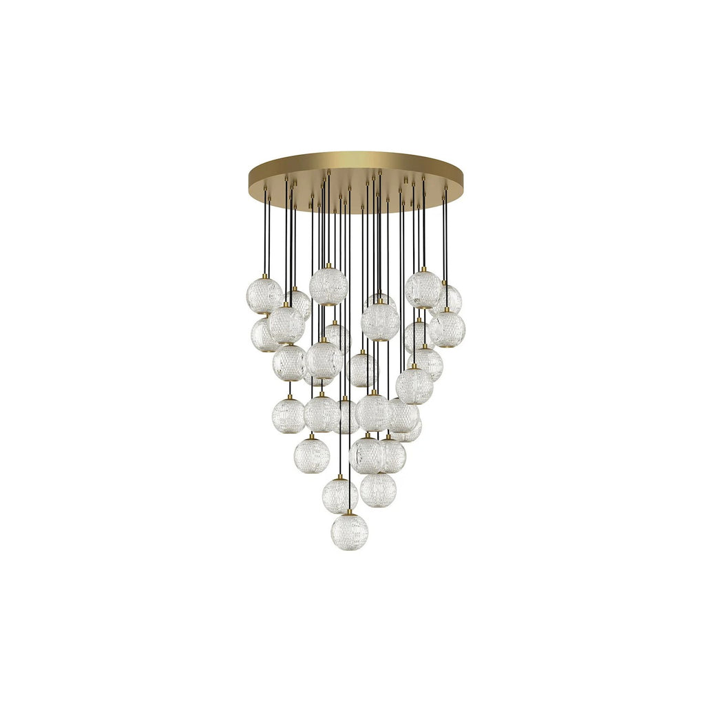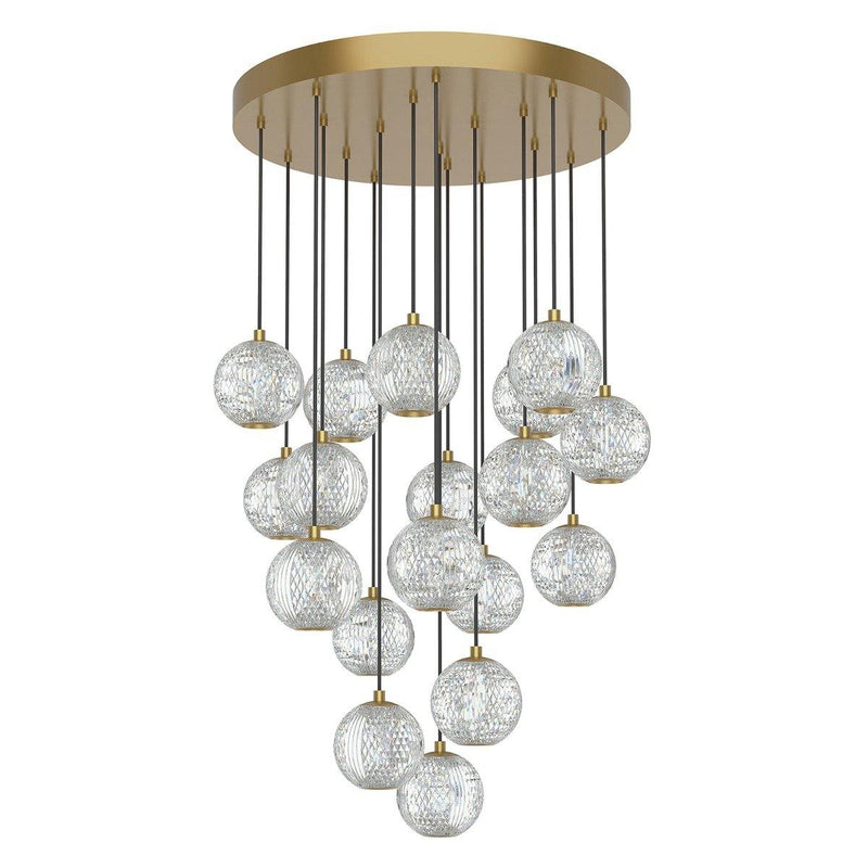 The timeless and gorgeous Marni Chandelier from Alora is an ode to luxury. The Marni collection is like a gorgeously beaded garment. It adds luxury and detailing to any interior design. This stunning piece has meticulously cut-glass sheds. This remarkable LED source chandelier has 3, 5, and 18 light options. It creates a glittering beam of illumination with its glass-cut balls. It is available in polished nickel and natural brass finishes. The chandelier is perfect to adorn in your living room, hallways, dining room, or kitchen.